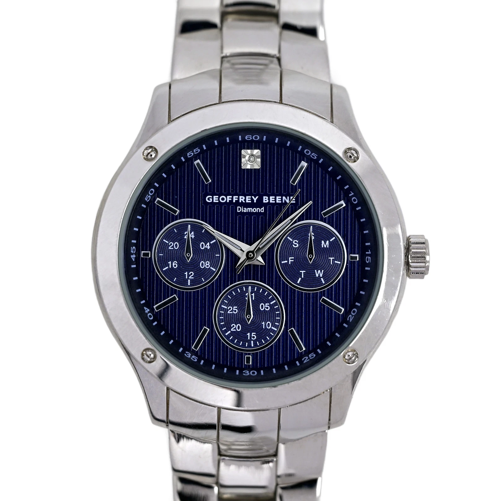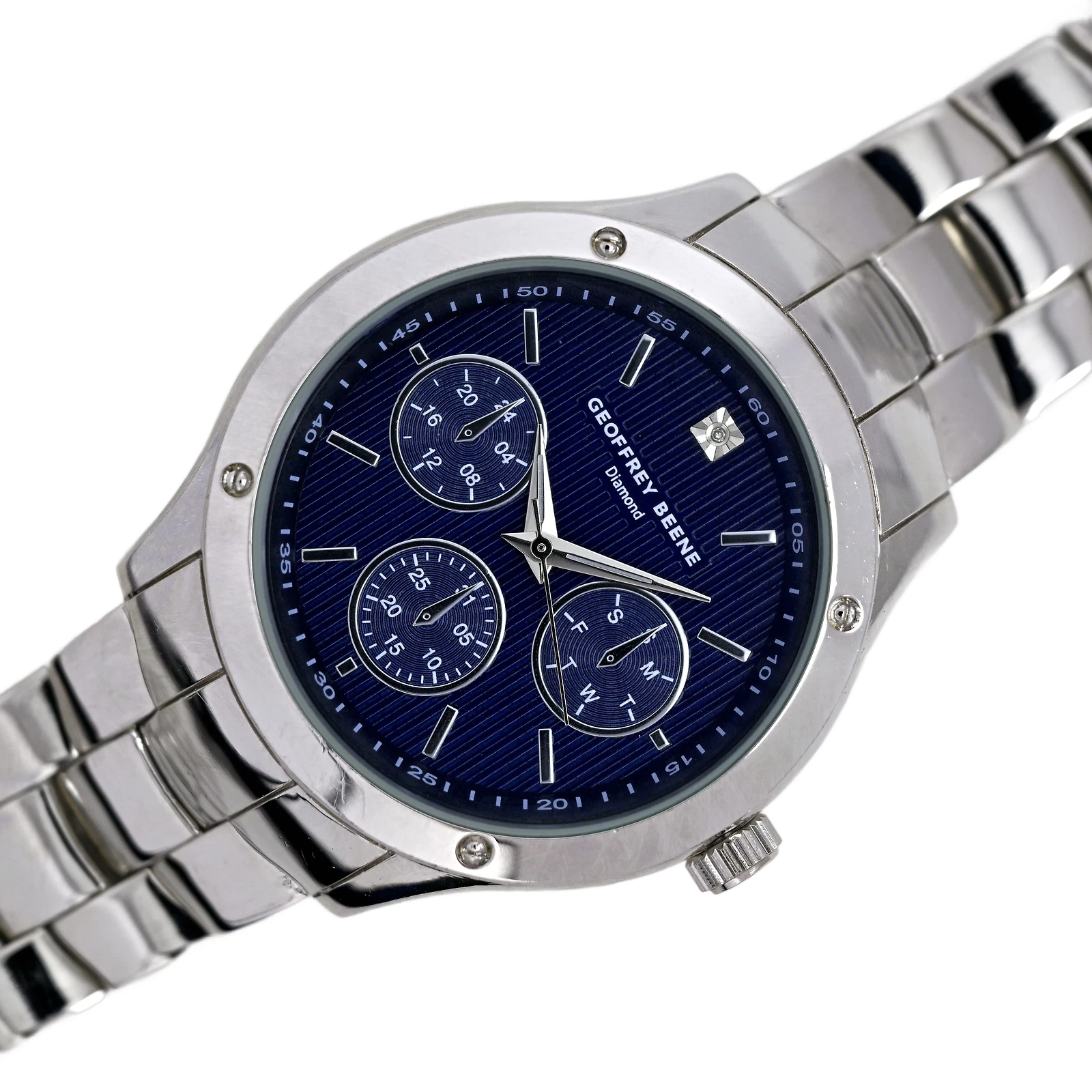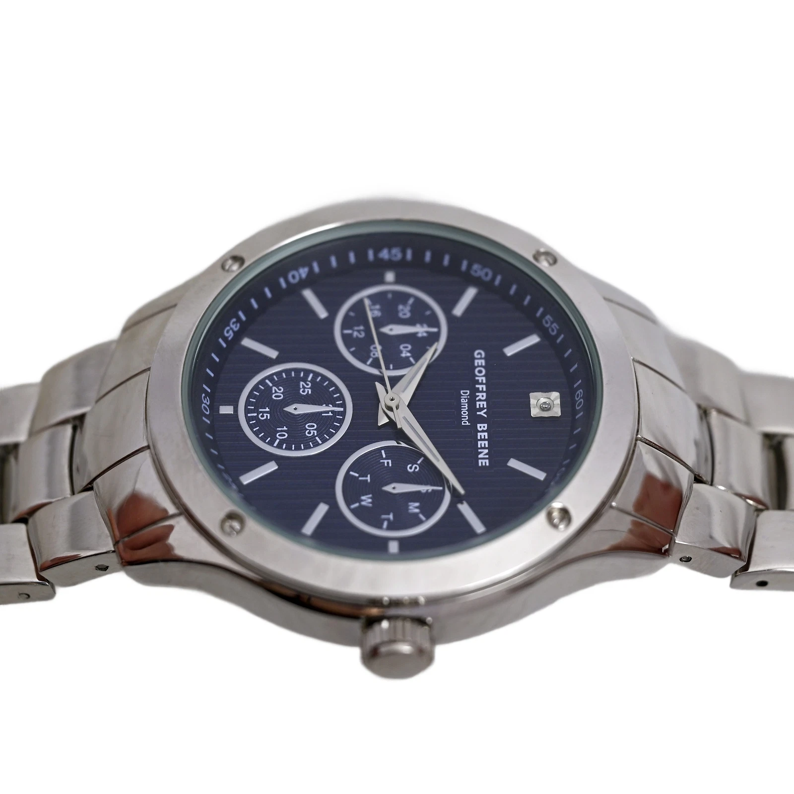 Geoffrey Beene Diamond Watch Men's Day Date Blue Linen Dial Steel