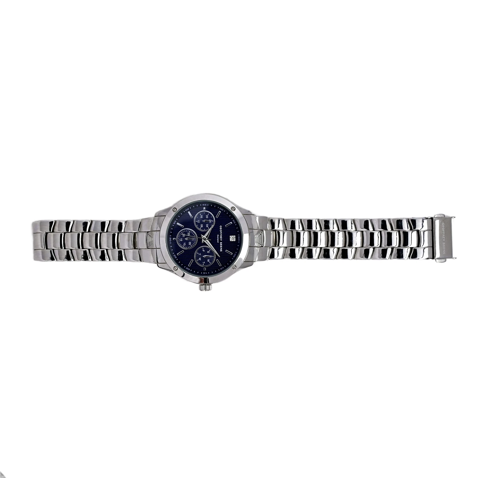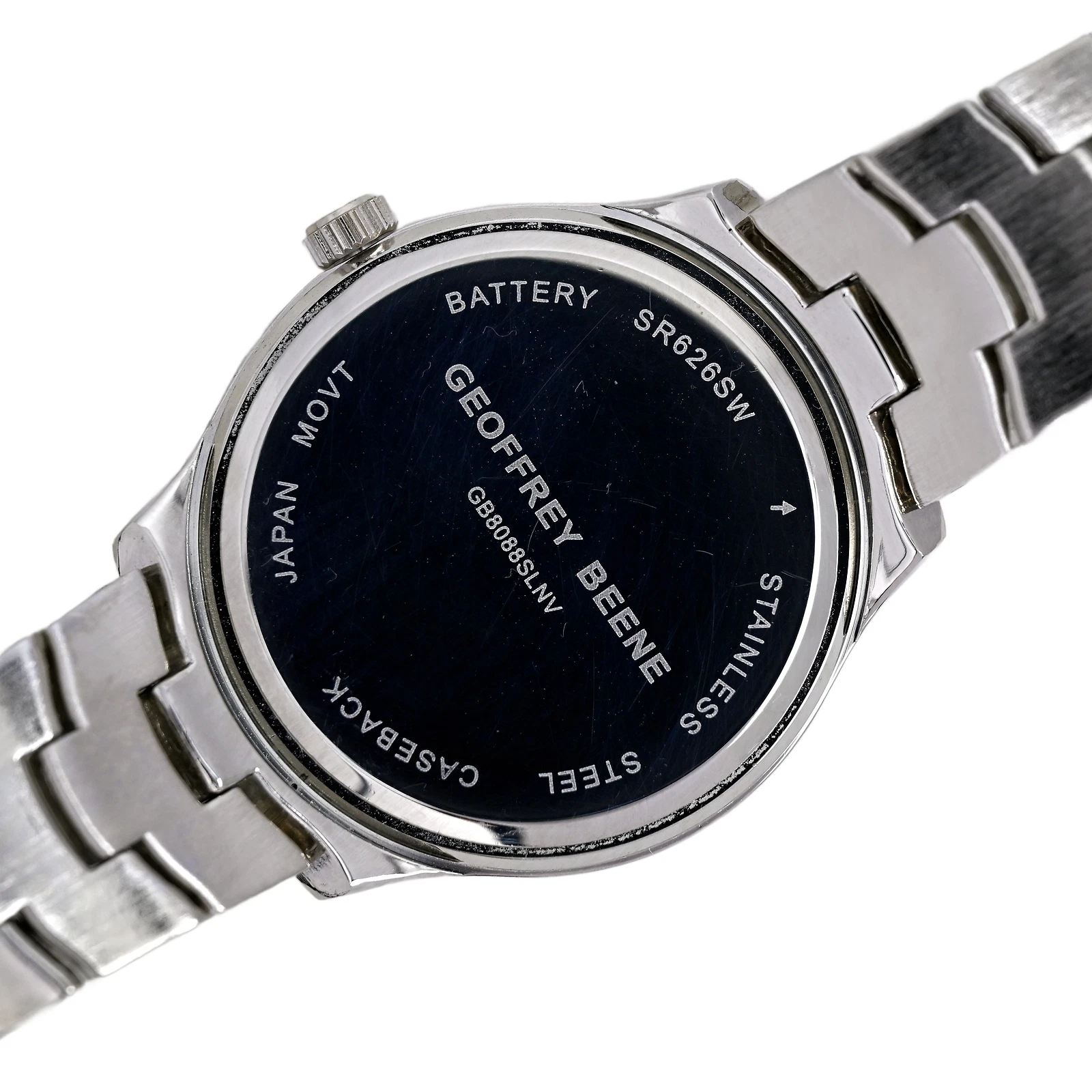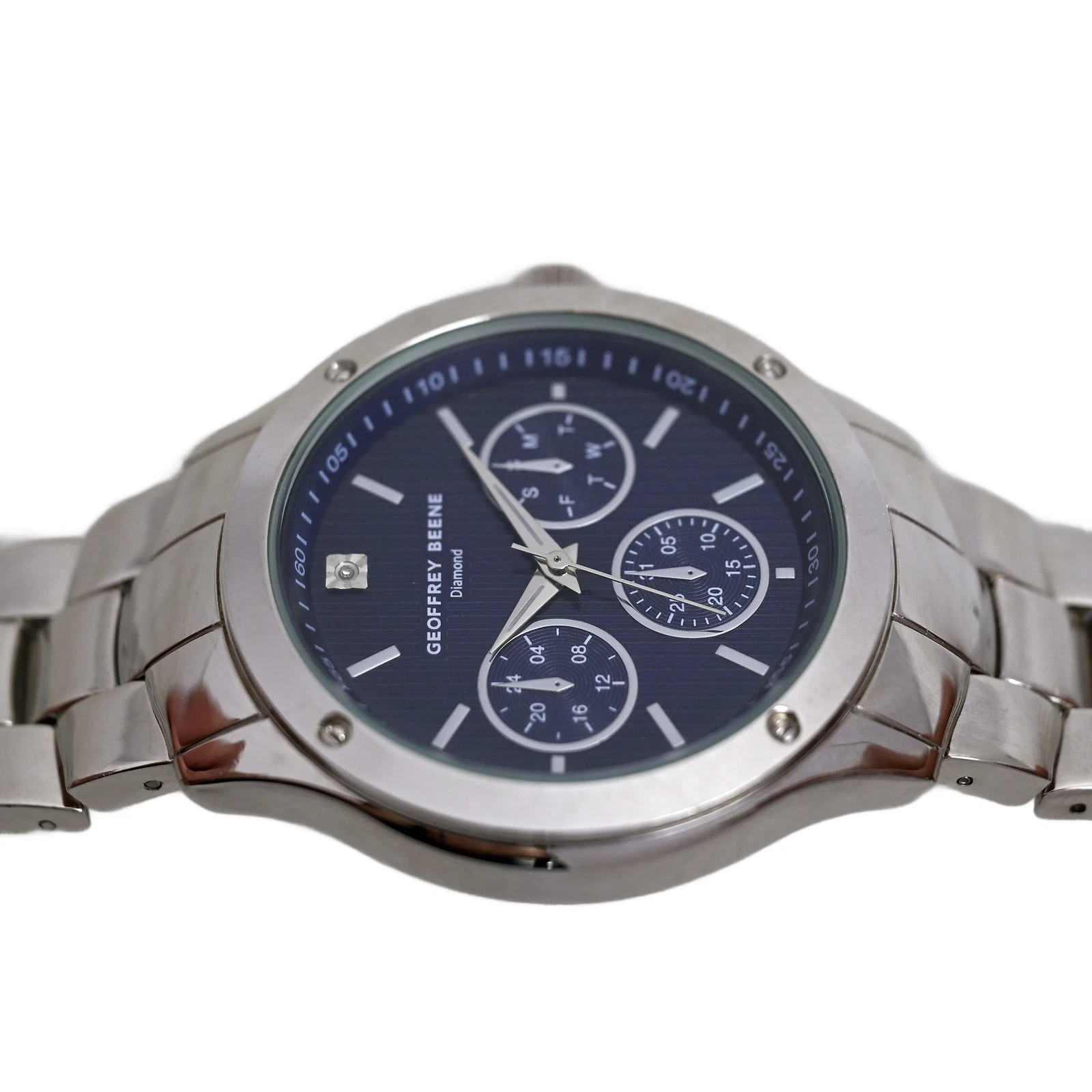Geoffrey Beene Diamond Watch Men's Day Date Blue Linen Dial Steel