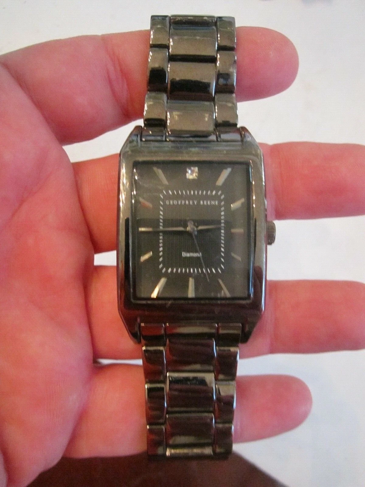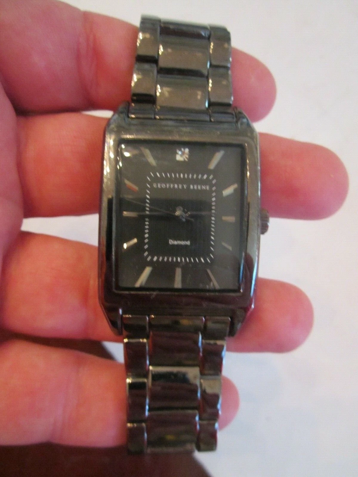 GEOFFREY BEENE TANK DIAMOND WATCH - DAY/DATE HEAVY WATCH - QUARTZ - BBA11