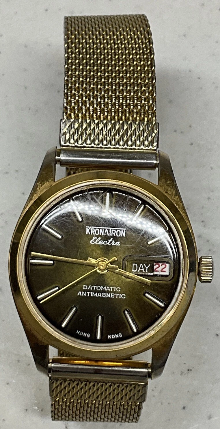 Kronatron Electra 1 Jewel Datomatic Antimagnetic Day/Date Watch Working IS301