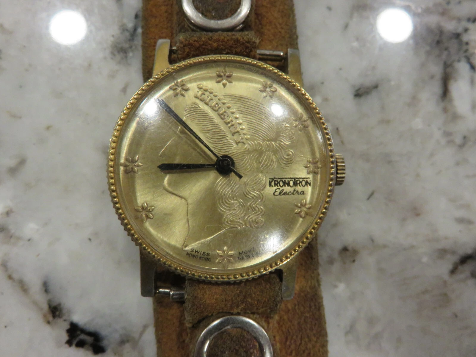 Vintage Kronotron Electra $20 Liberty Head Coin Swiss Watch - Working LOOK