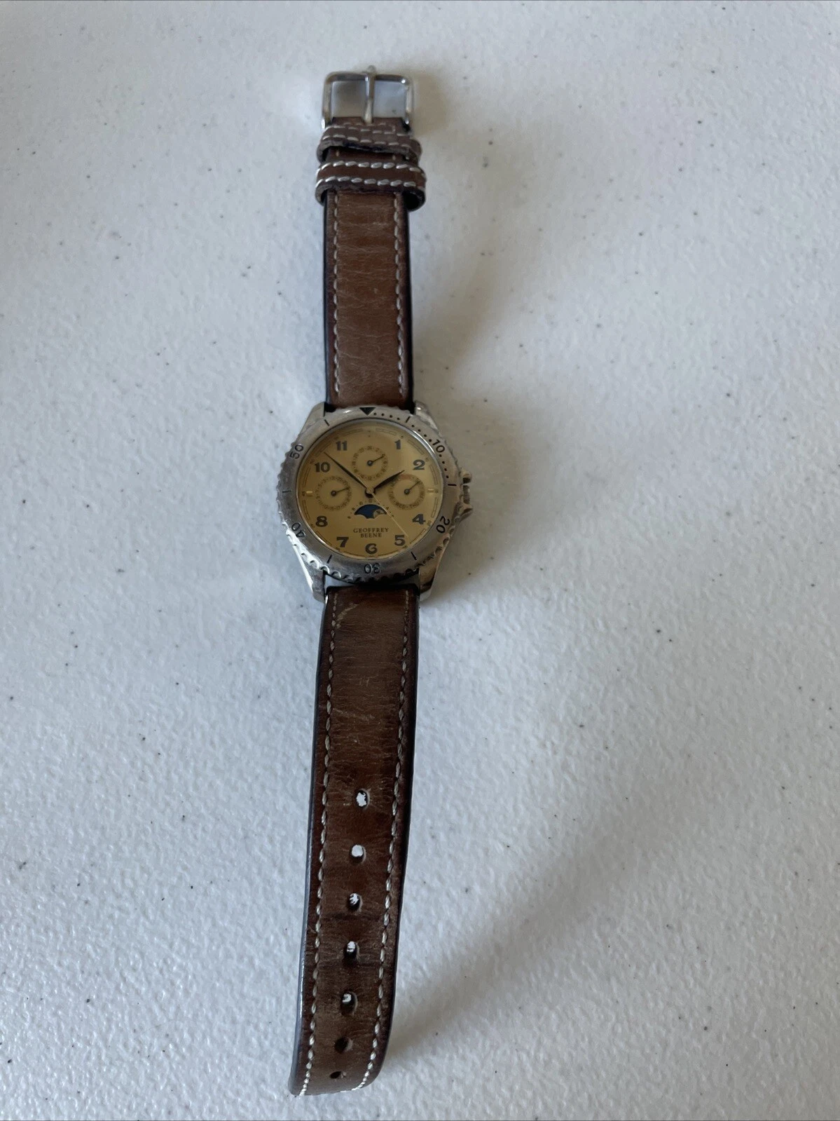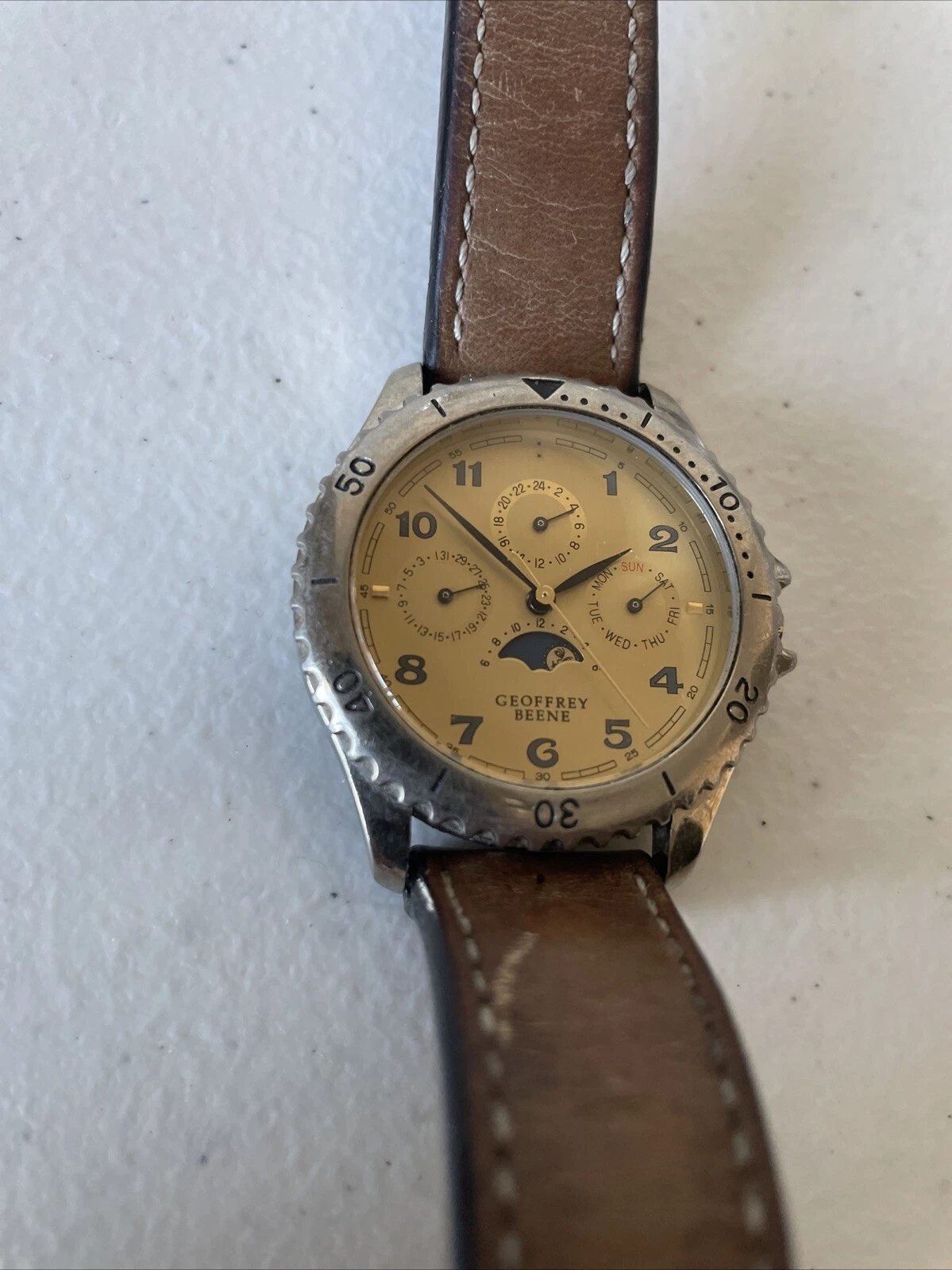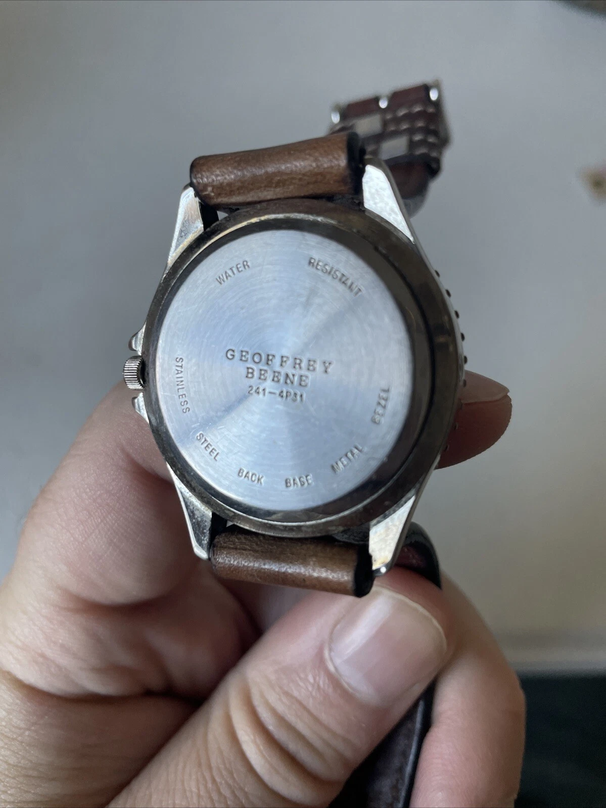 Geoffrey Beene Mens Watch brand w/ Leather Band #241-4P31 needs battery