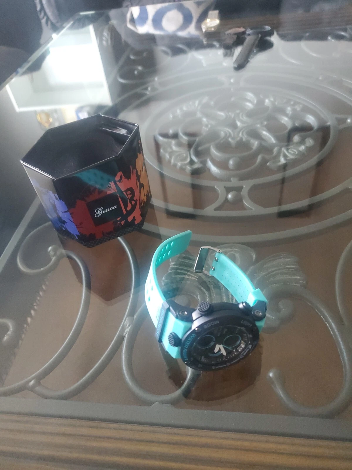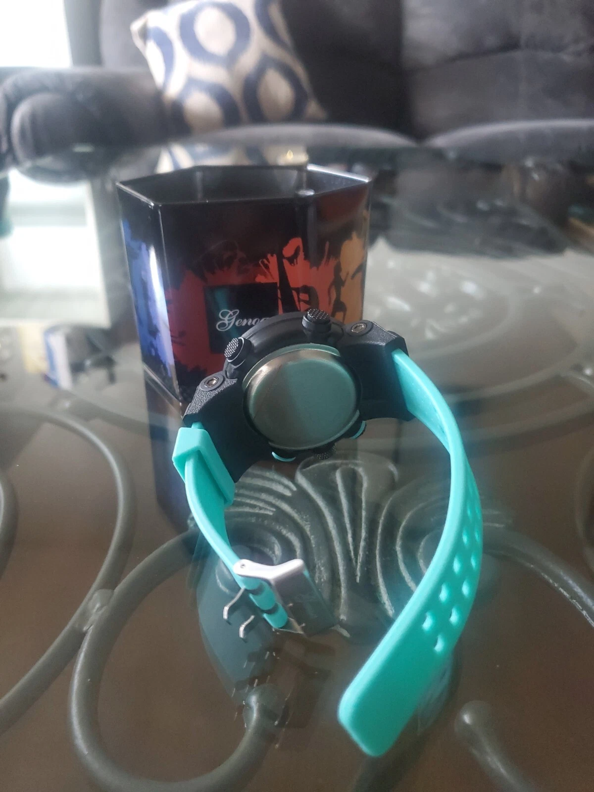 GENOA Japanese Movement Key Watch for in Lake Blue Silicone Strap