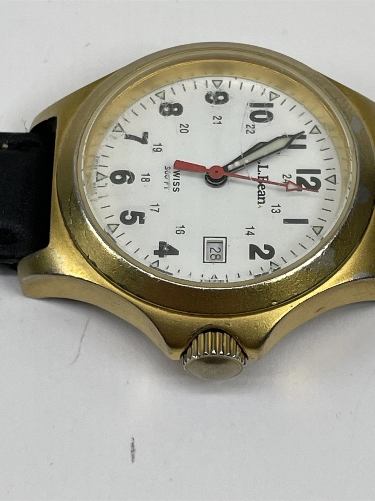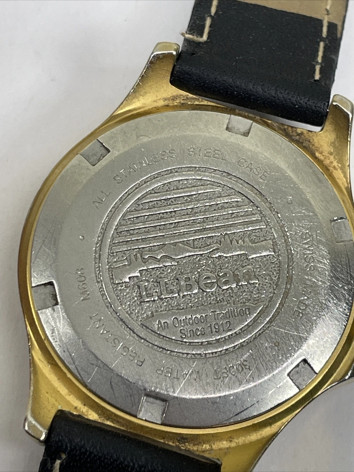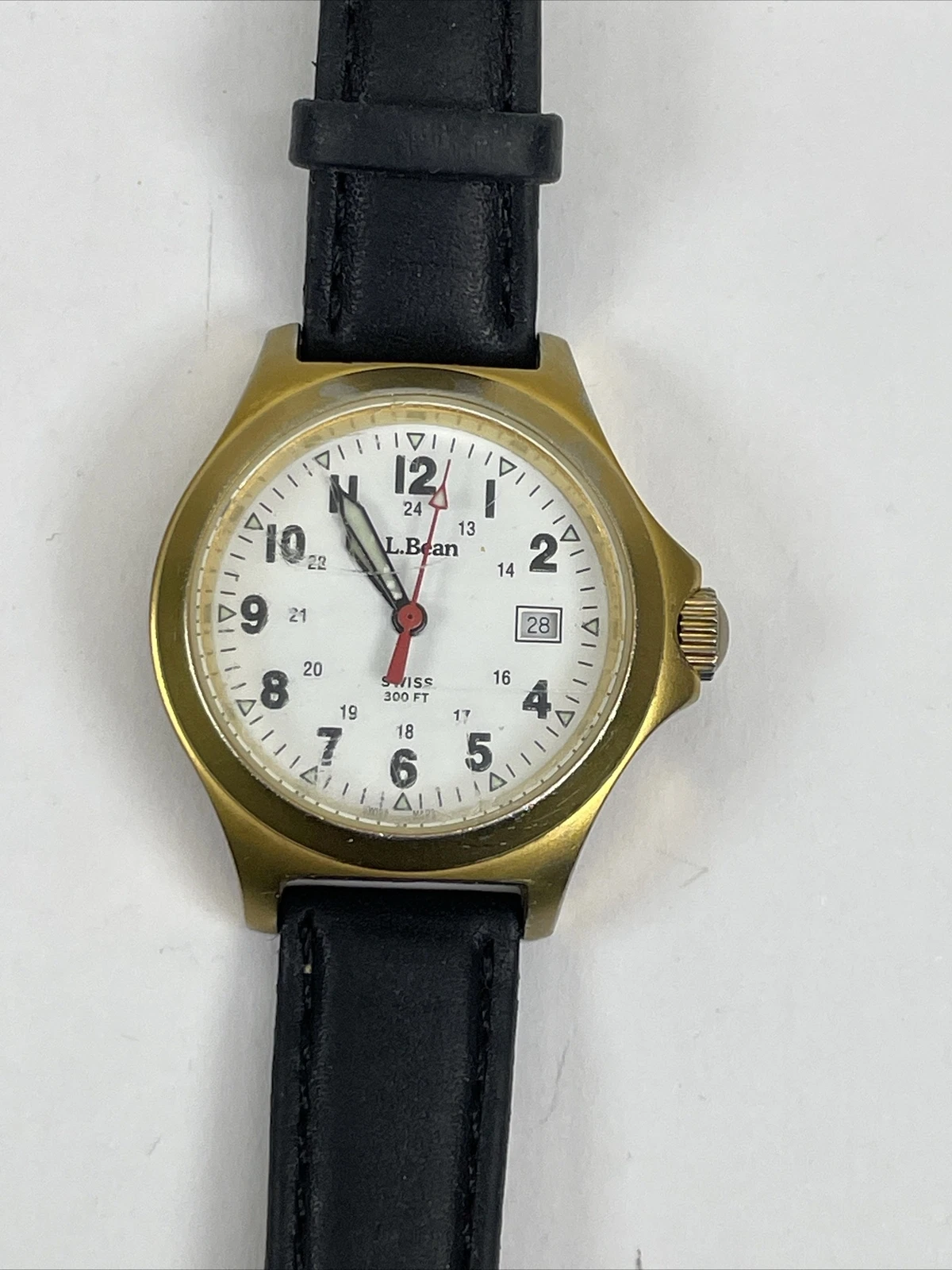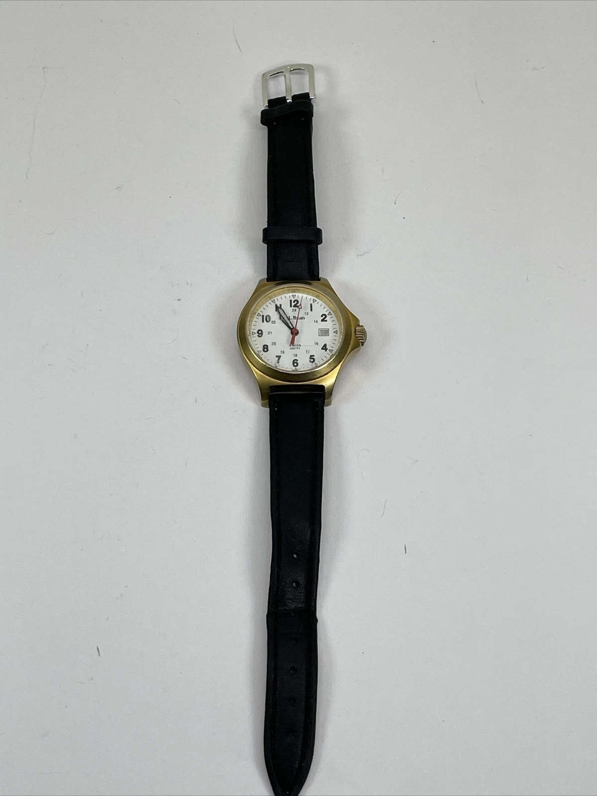 Vintage L.L. Bean Gold Tone Swiss 300ft Field Quartz Watch Not Running