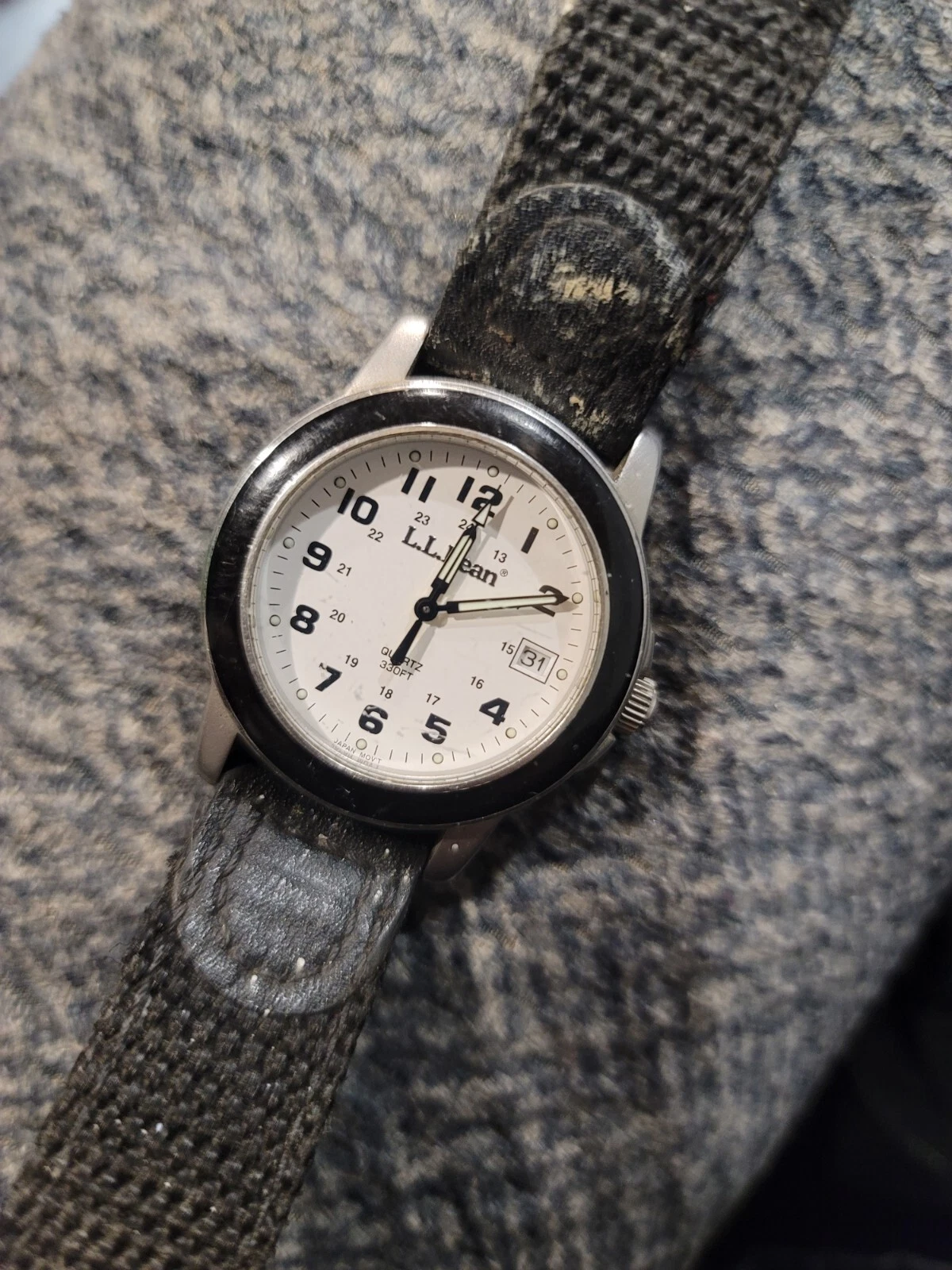 Ll Bean Vintage Watch Black White Quartz Wristwatch Mens Outdoor Tradition
