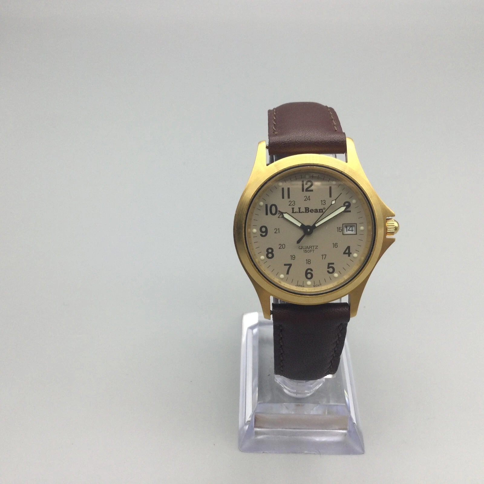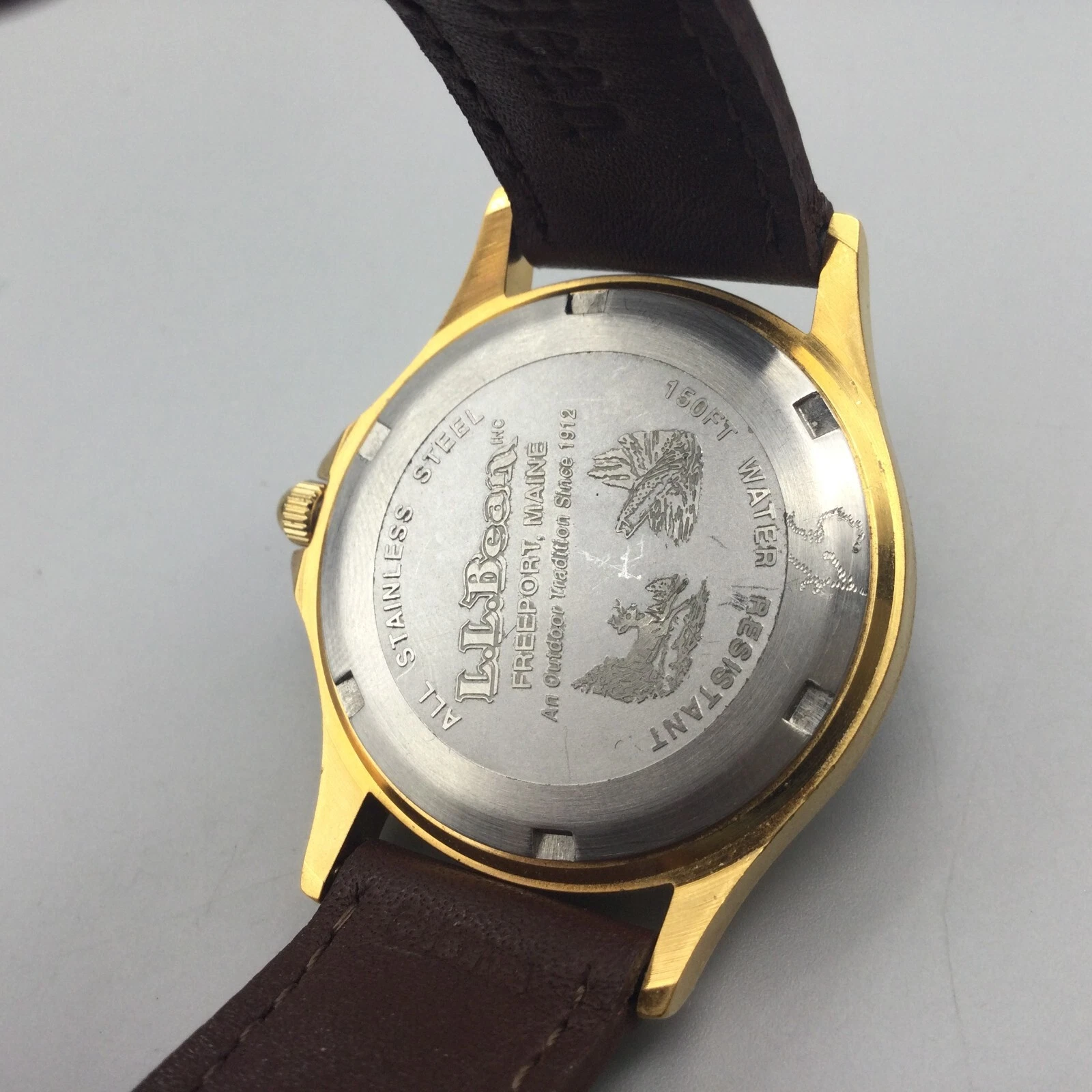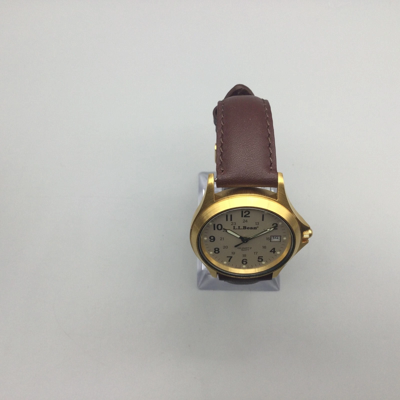 LL Bean Field Watch Watch Men 37mm Gold Tone Date Brown Leather Band New Battery