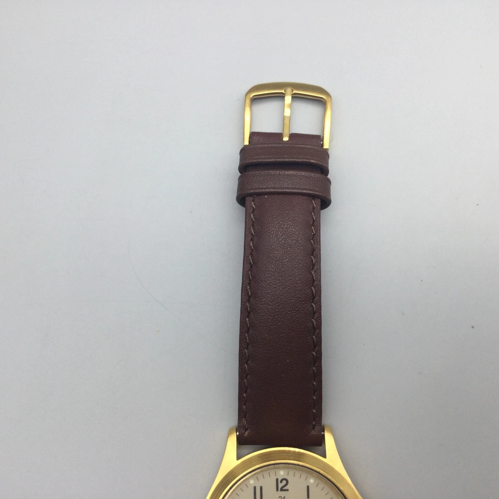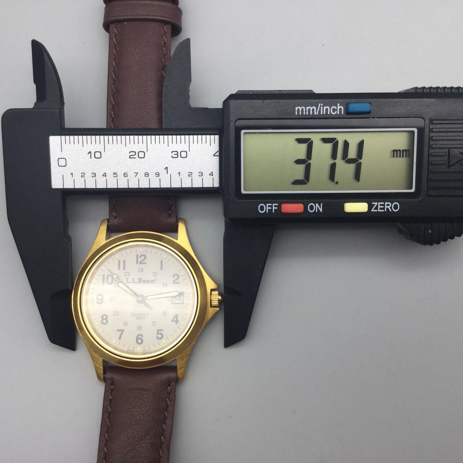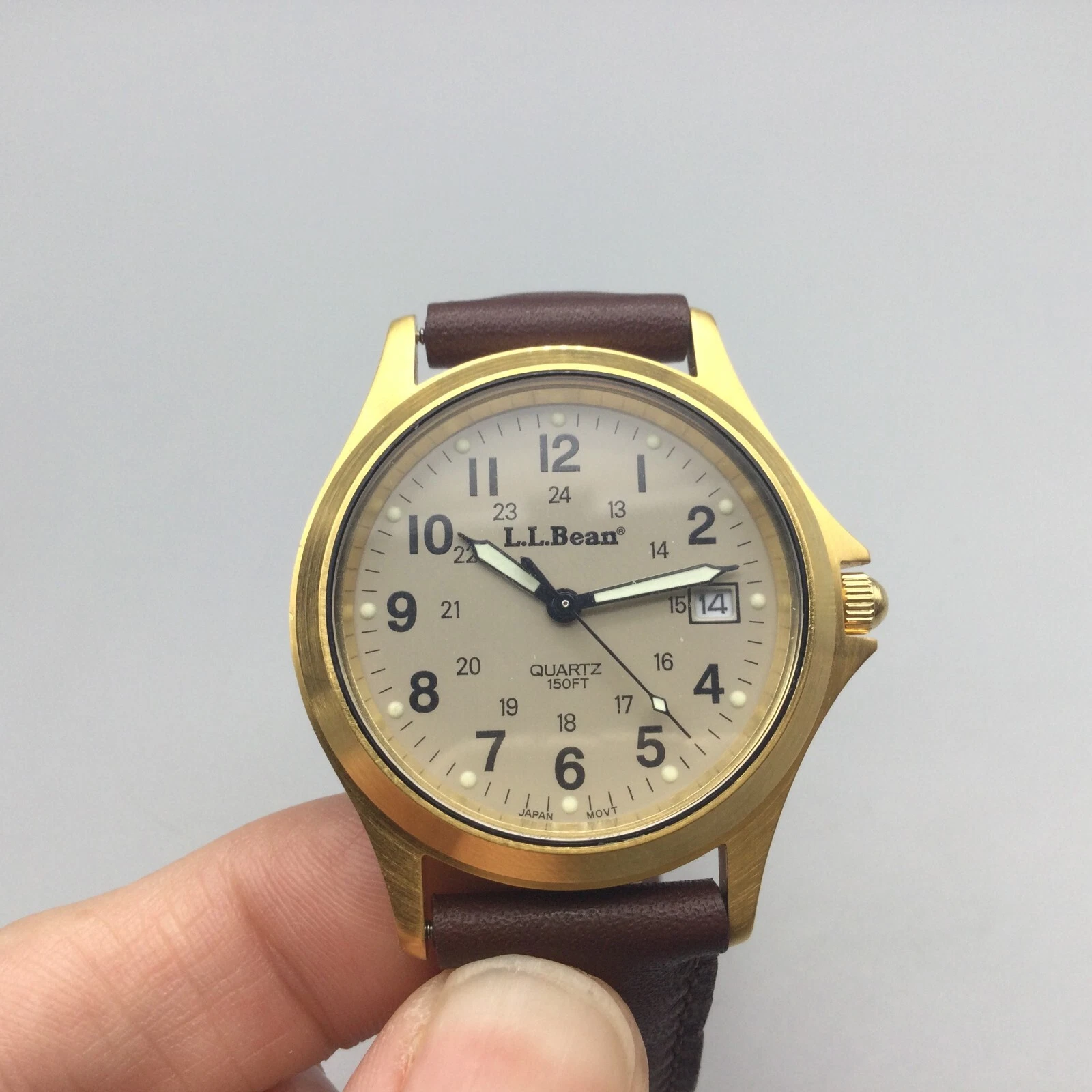 LL Bean Field Watch Watch Men 37mm Gold Tone Date Brown Leather Band New Battery