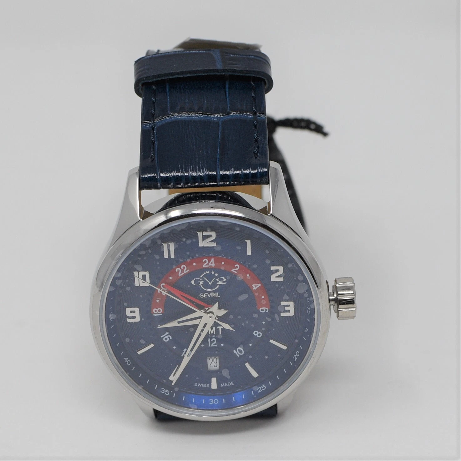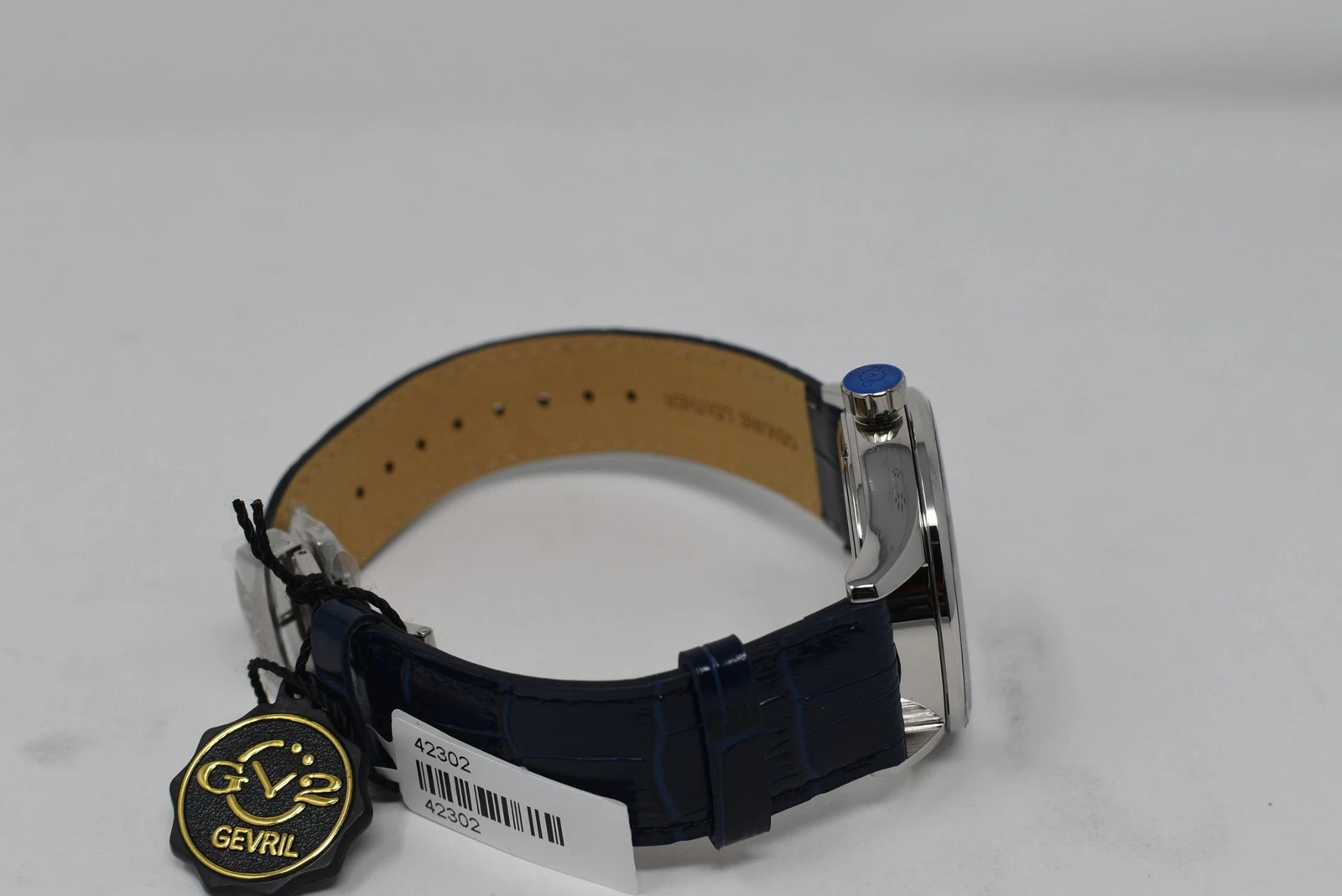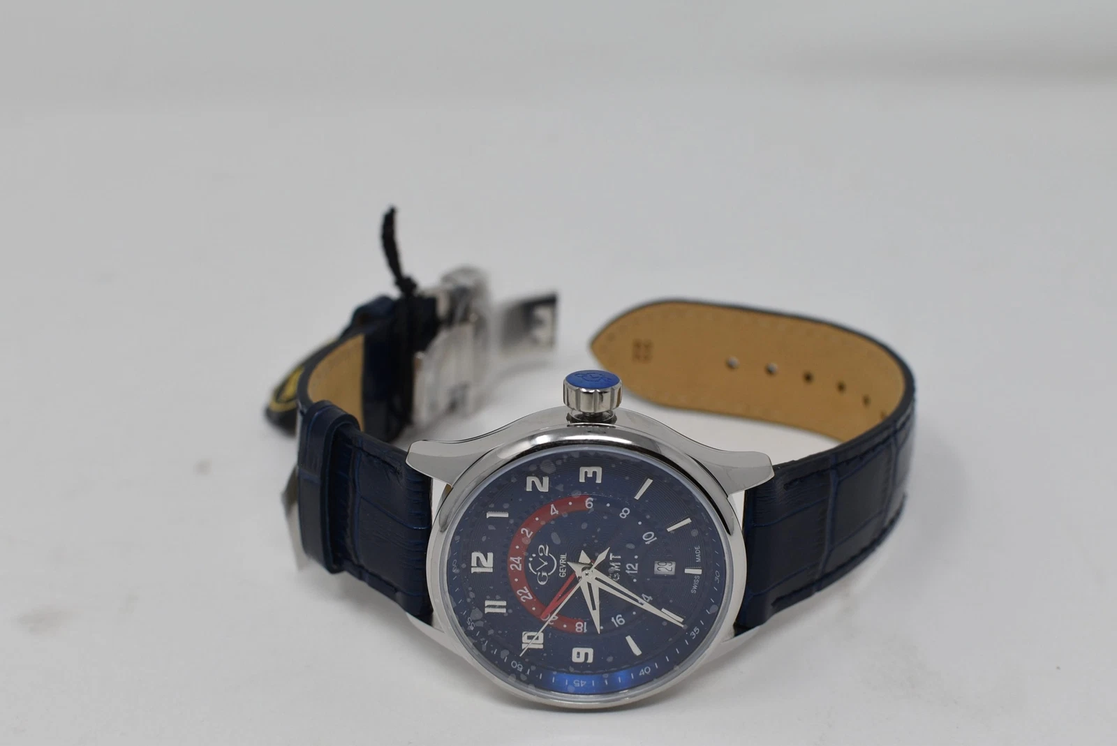 Gv2 By Gevril Men's 42302 Giromondo Blue Dial Leather Date Swiss Made GMT Watch