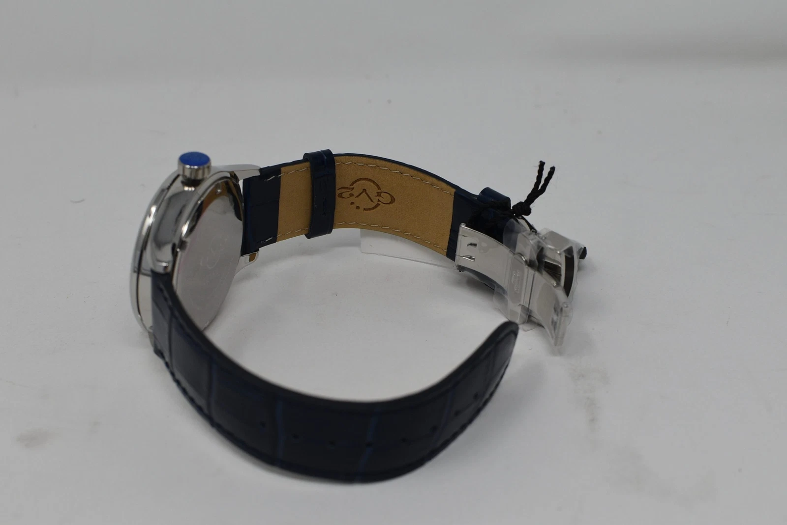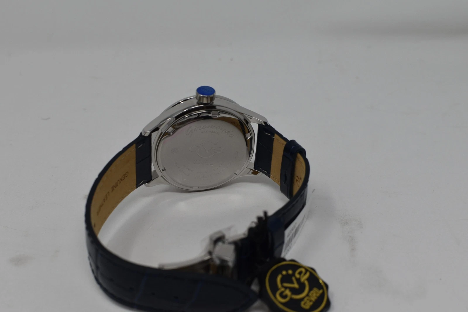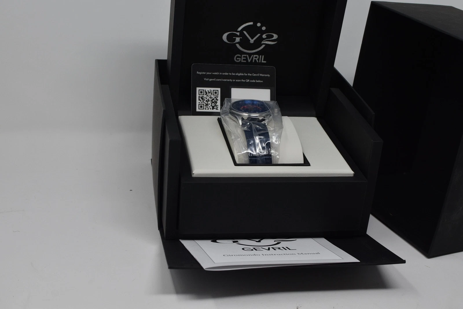 Gv2 By Gevril Men's 42302 Giromondo Blue Dial Leather Date Swiss Made GMT Watch