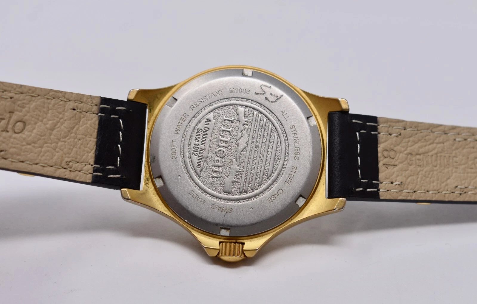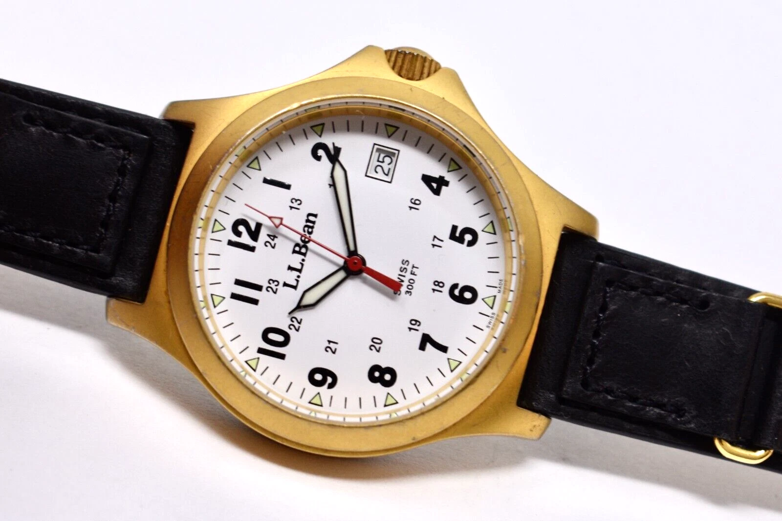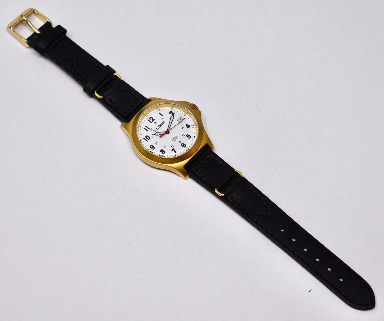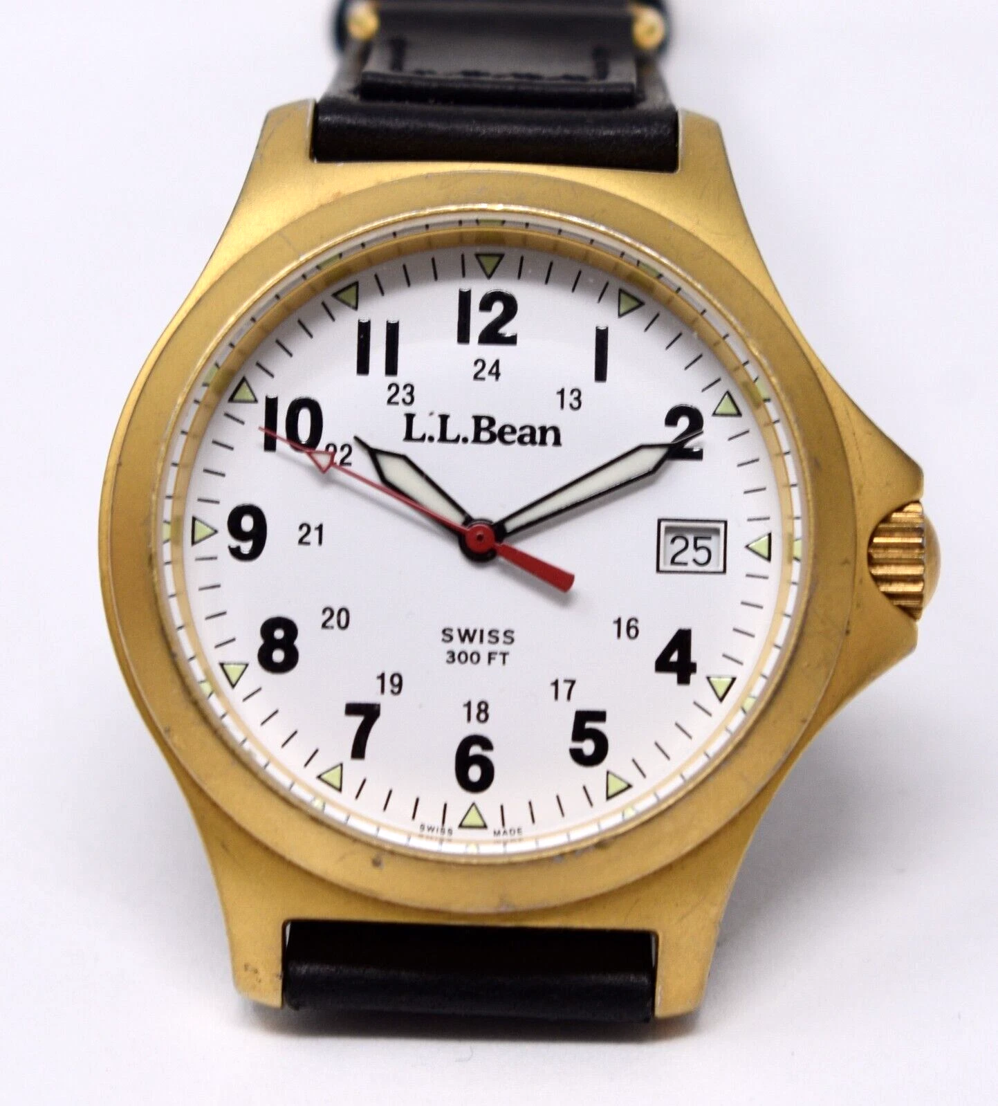 L.L. Bean Mens Swiss Quartz Field Wristwatch 300 Ft. Water Resist All Stainless