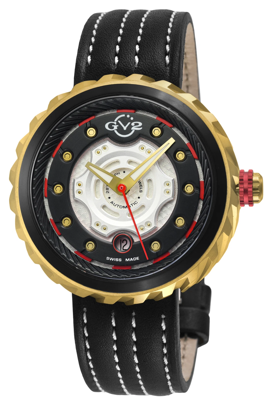 GV2 By Gevril Men's 13203 Motorcycle Automatic Blue Leather Swiss Watch