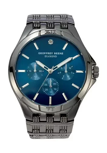 Geoffrey Beene Gunmetal Blue Dial Genuine Diamond Watch