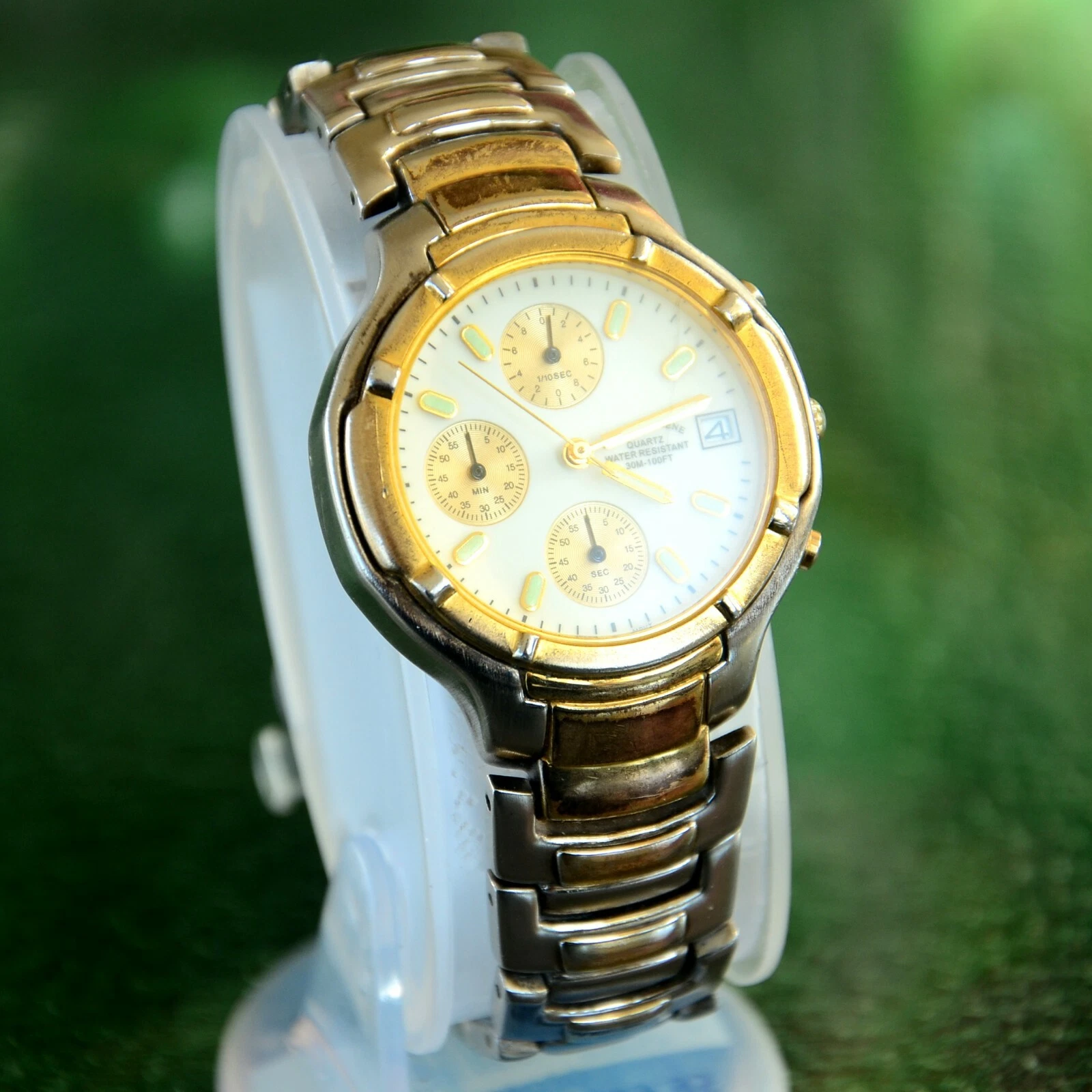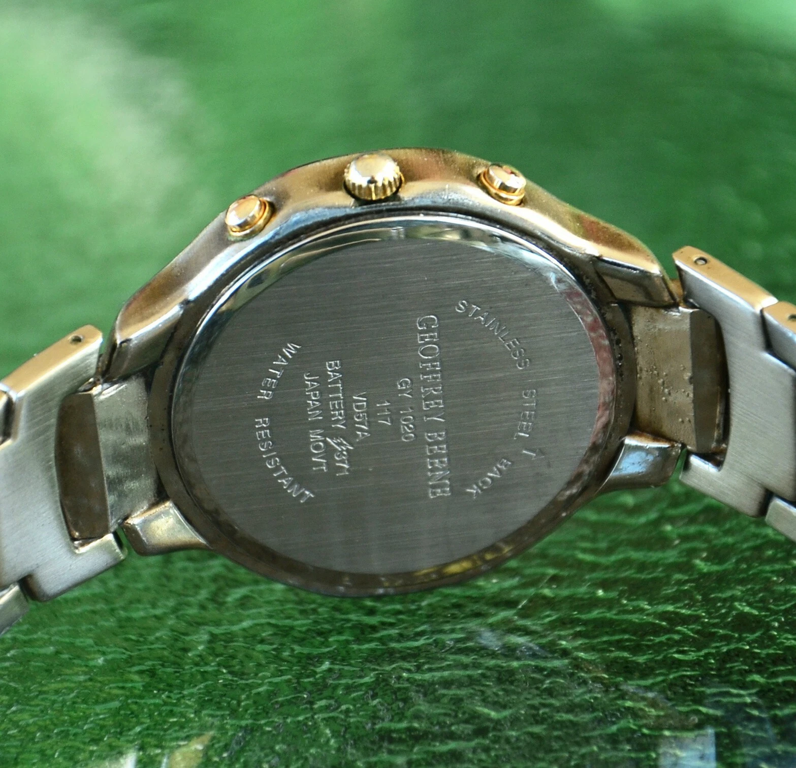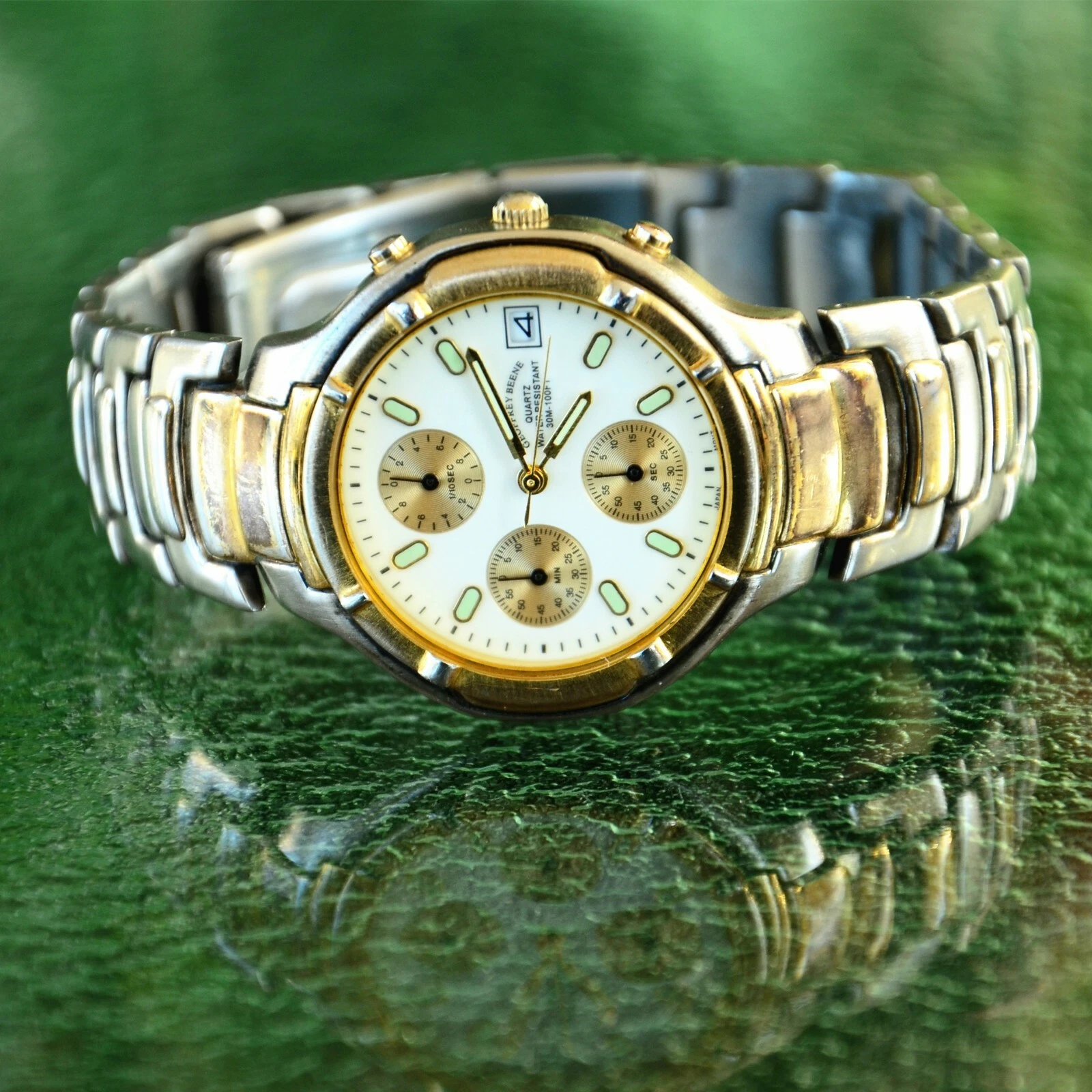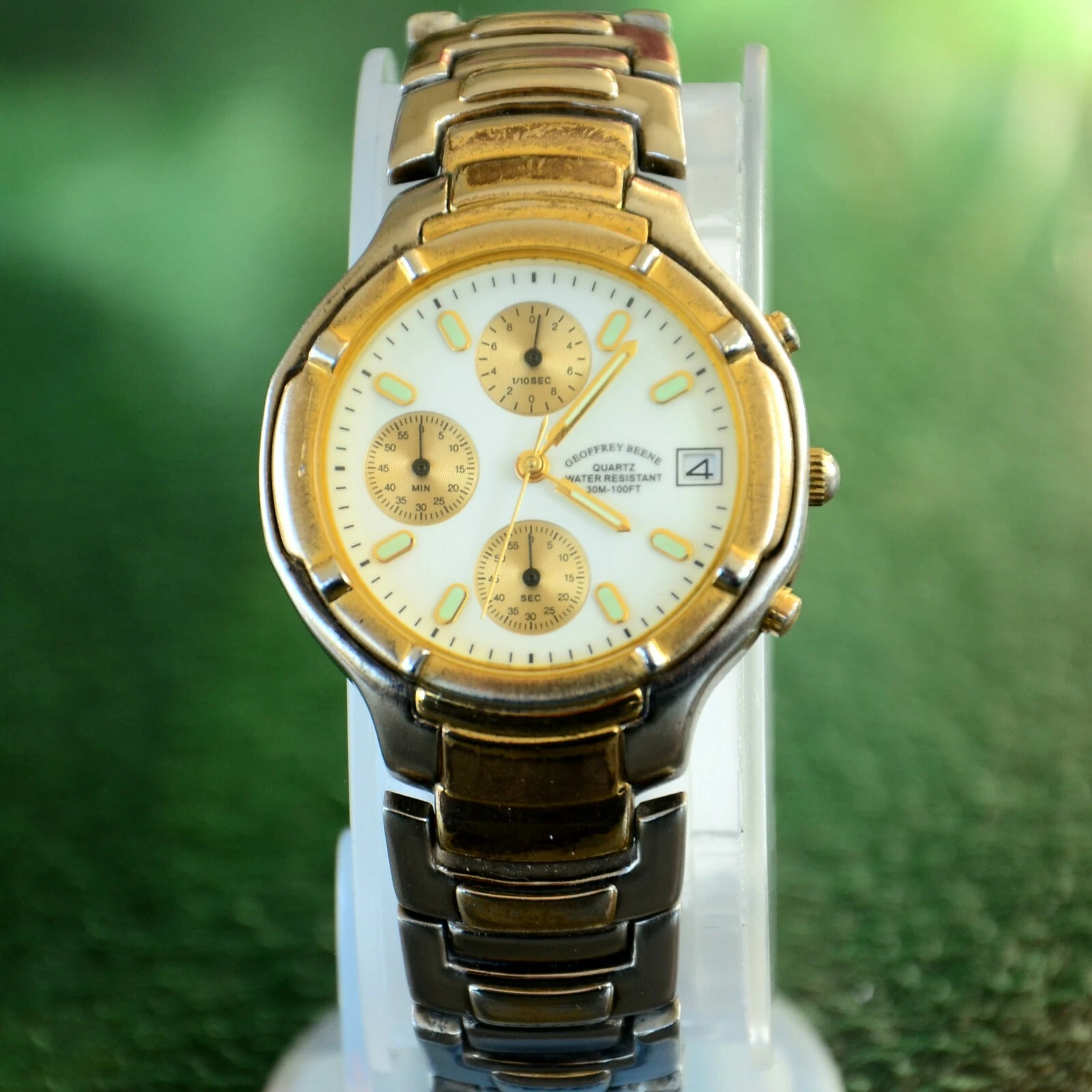 GEOFFREY BEENE TWO TONE STAINLESS STEEL MENS QUARTZ WATCH FITS 8-8.5" WRIST