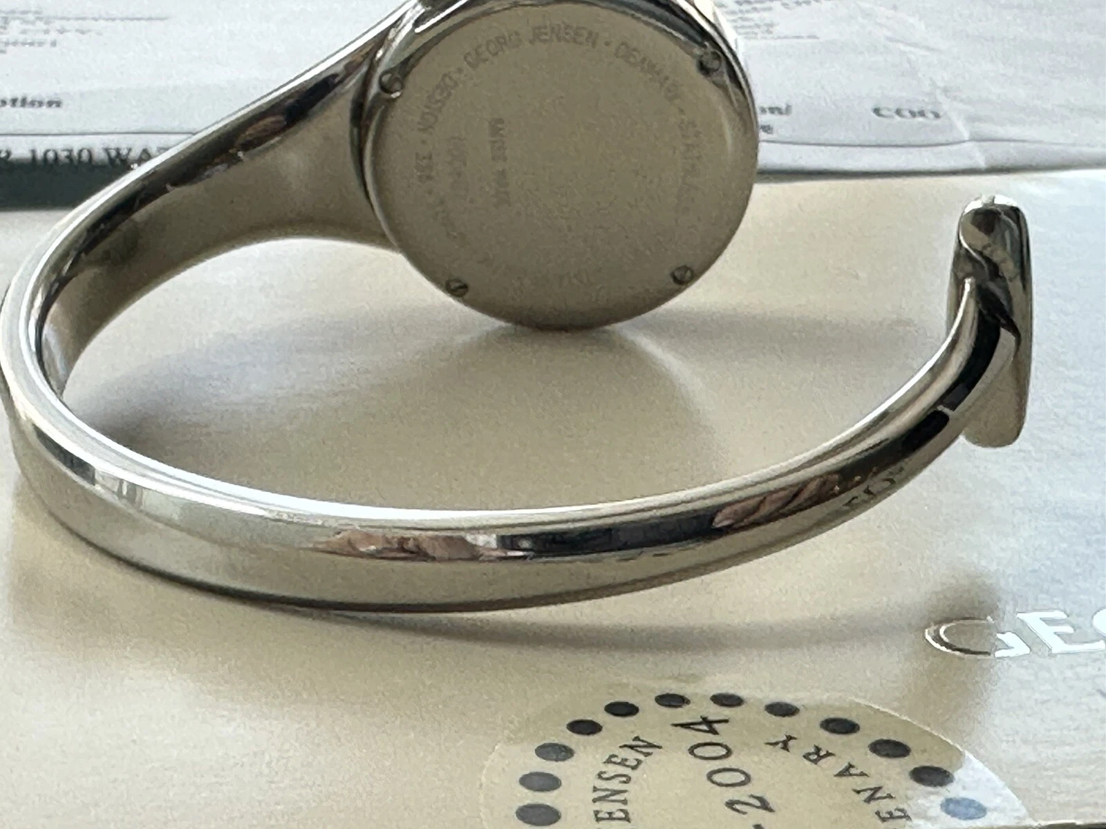 GEORG JENSEN- LADIES VIVIANNA TORUN PAVE BANGLE WATCH-# 336 W/DIAMONDS (.29CT)