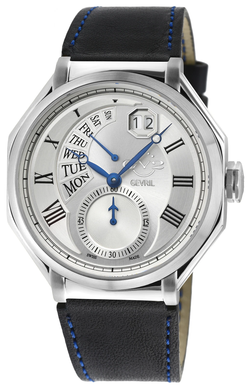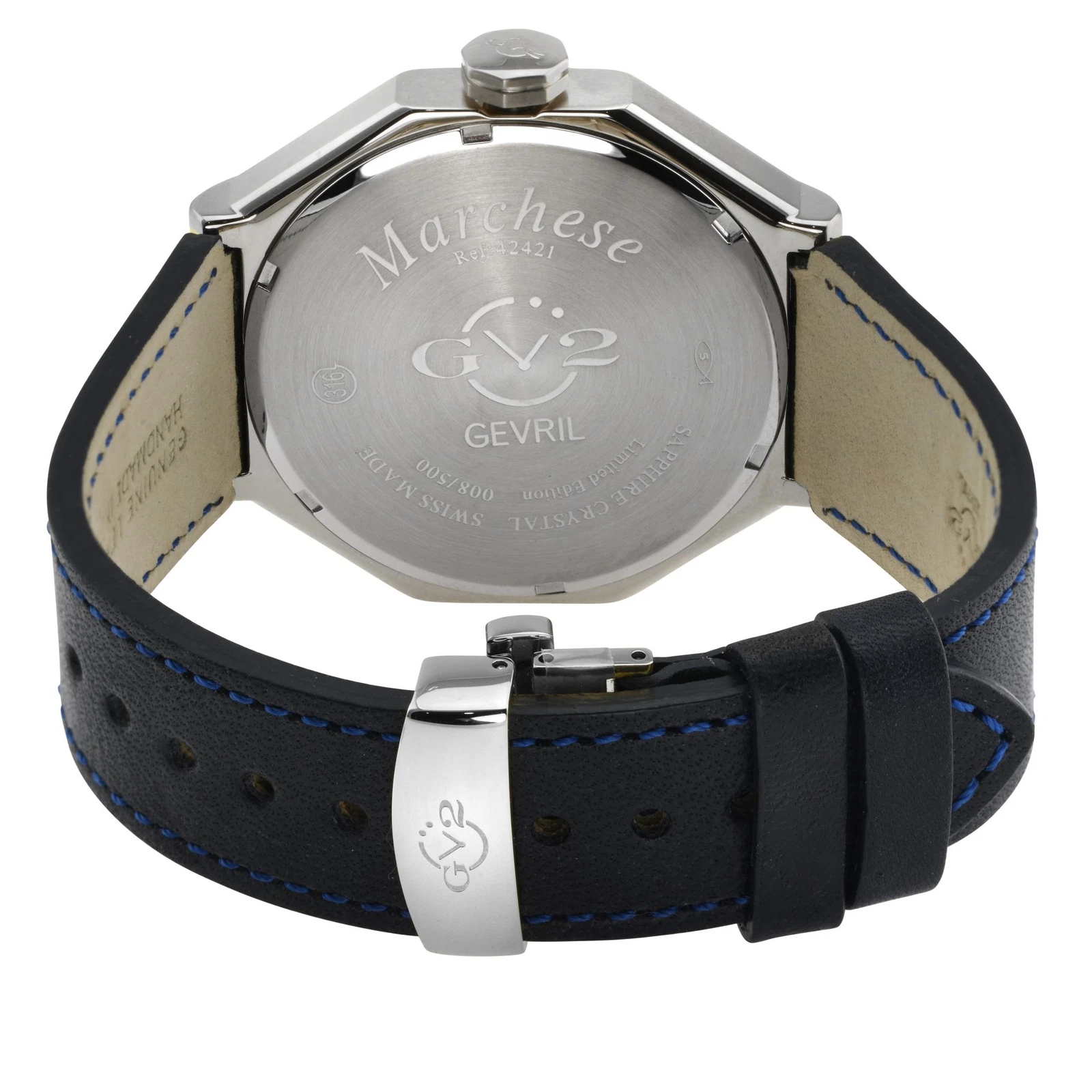 Gv2 By Gevril Men's 42420.1 Marchese Stainles Steel Black Leather Day/Date Watch