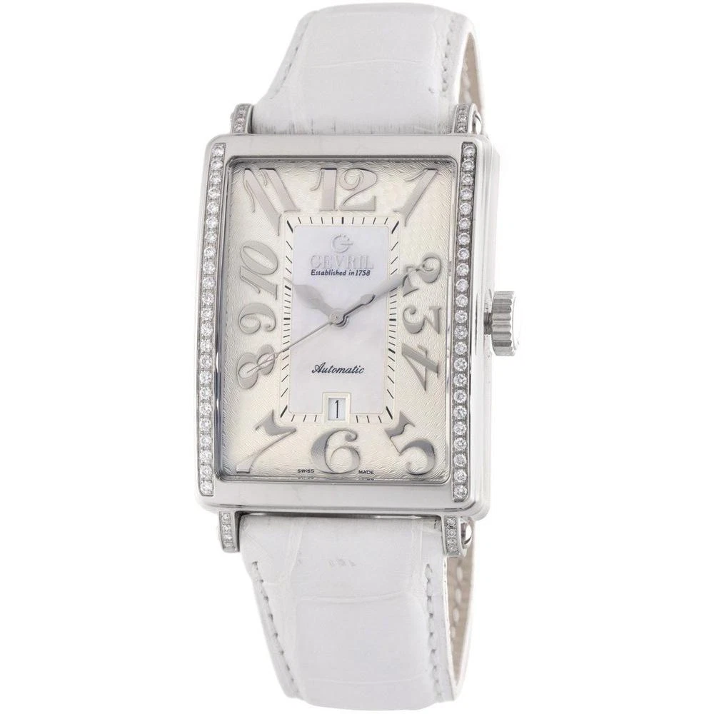 Gevril Women 6209NE Glamour Automatic White Diamond Crocodile Leather Wristwatch