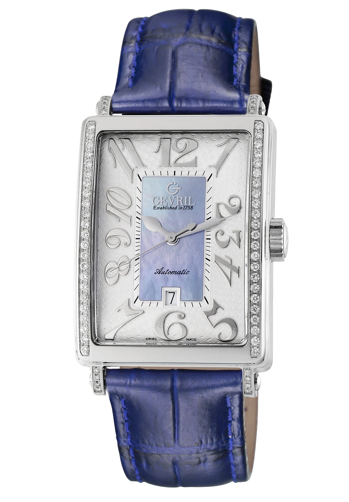 Gevril Women's 6207ne Glamour Automatic Diamond Blue MOP Dial Date Wristwatch