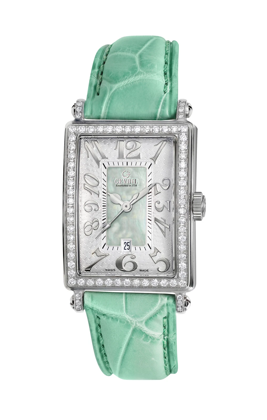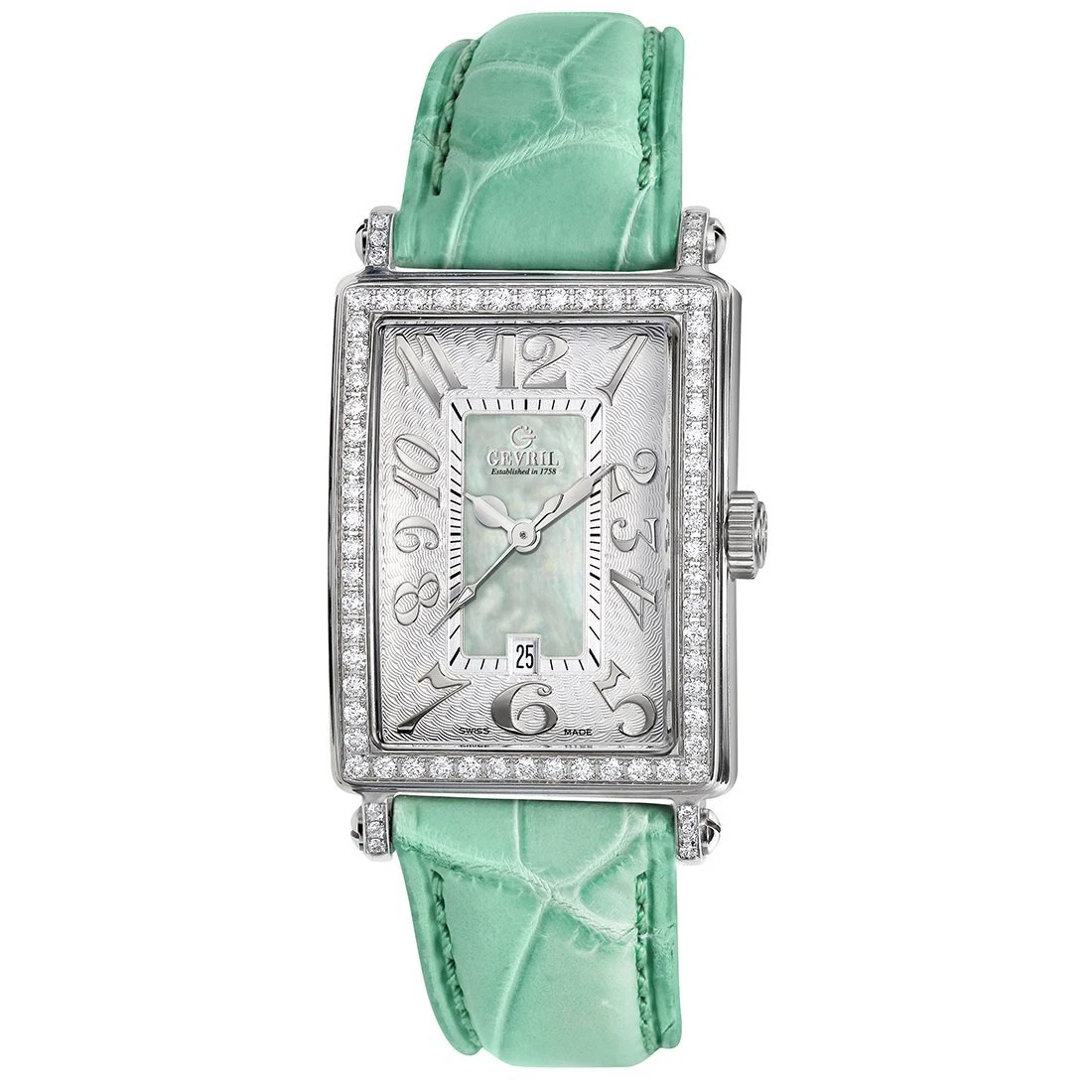 Gevril Women's 7246nl Avenue of Americas Mini Diamond Green Leather Wristwatch