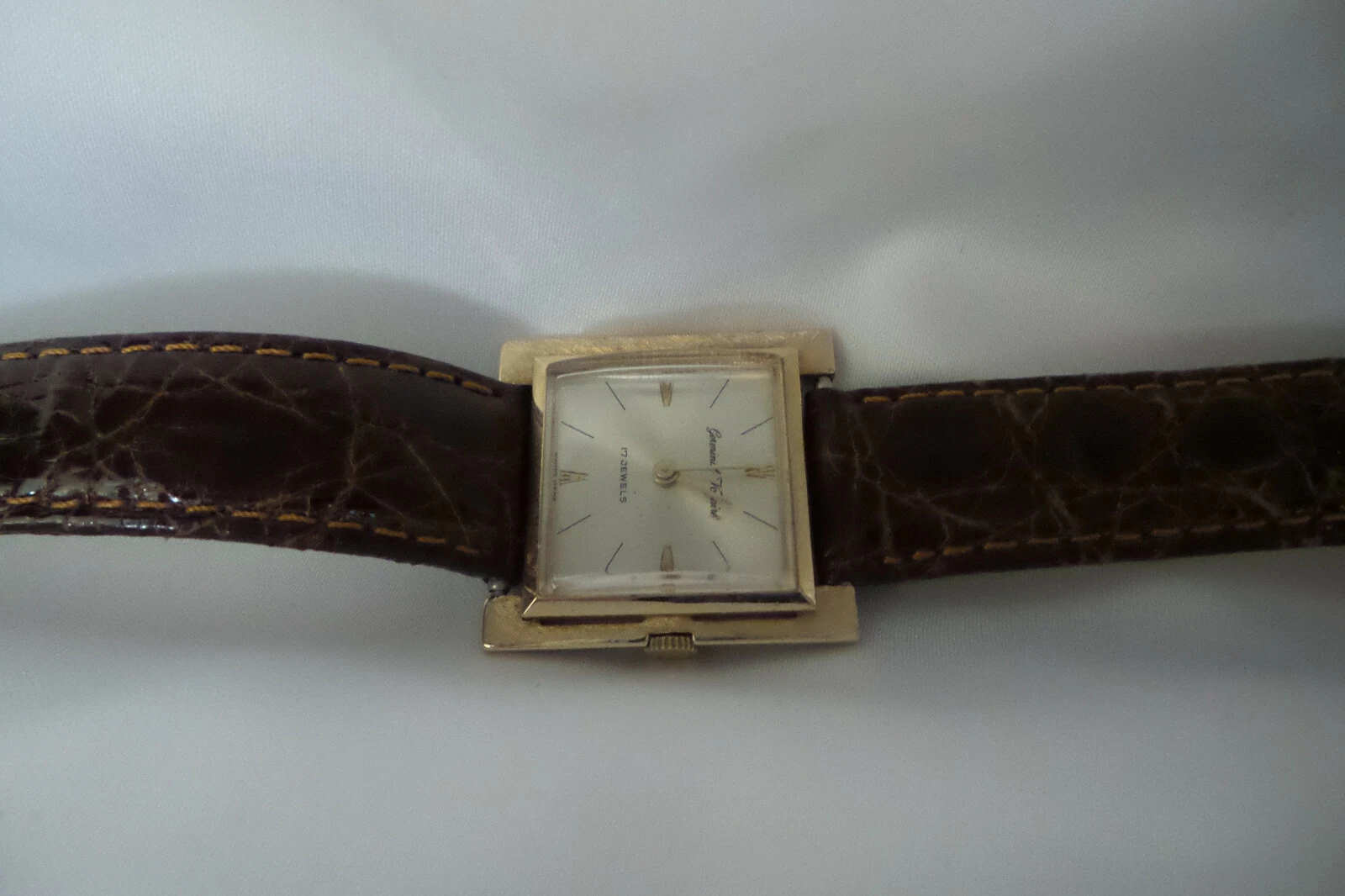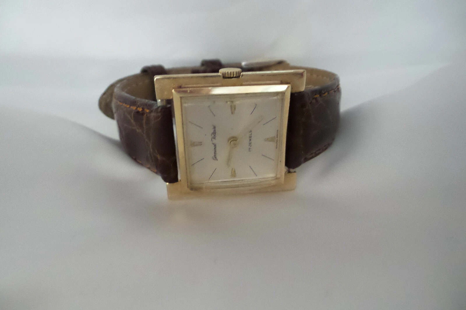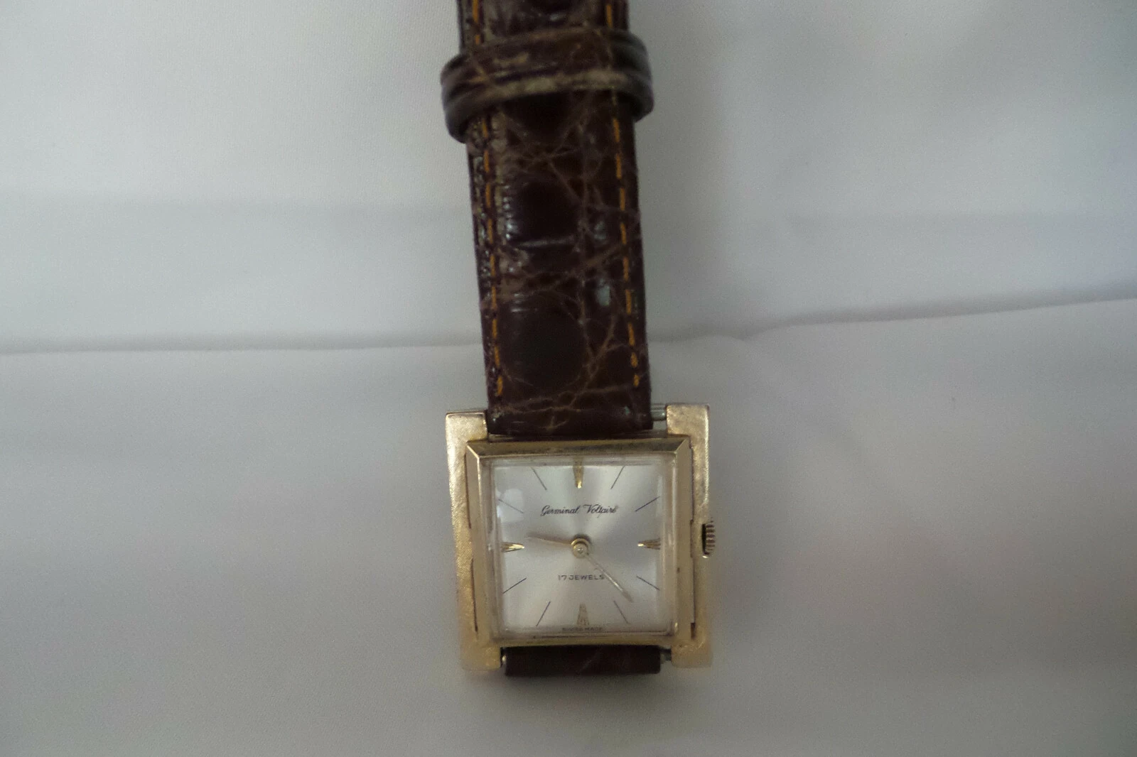 Rare Solid 14kt 1960's Gents "Germinal Voltaire" Square Wristwatch