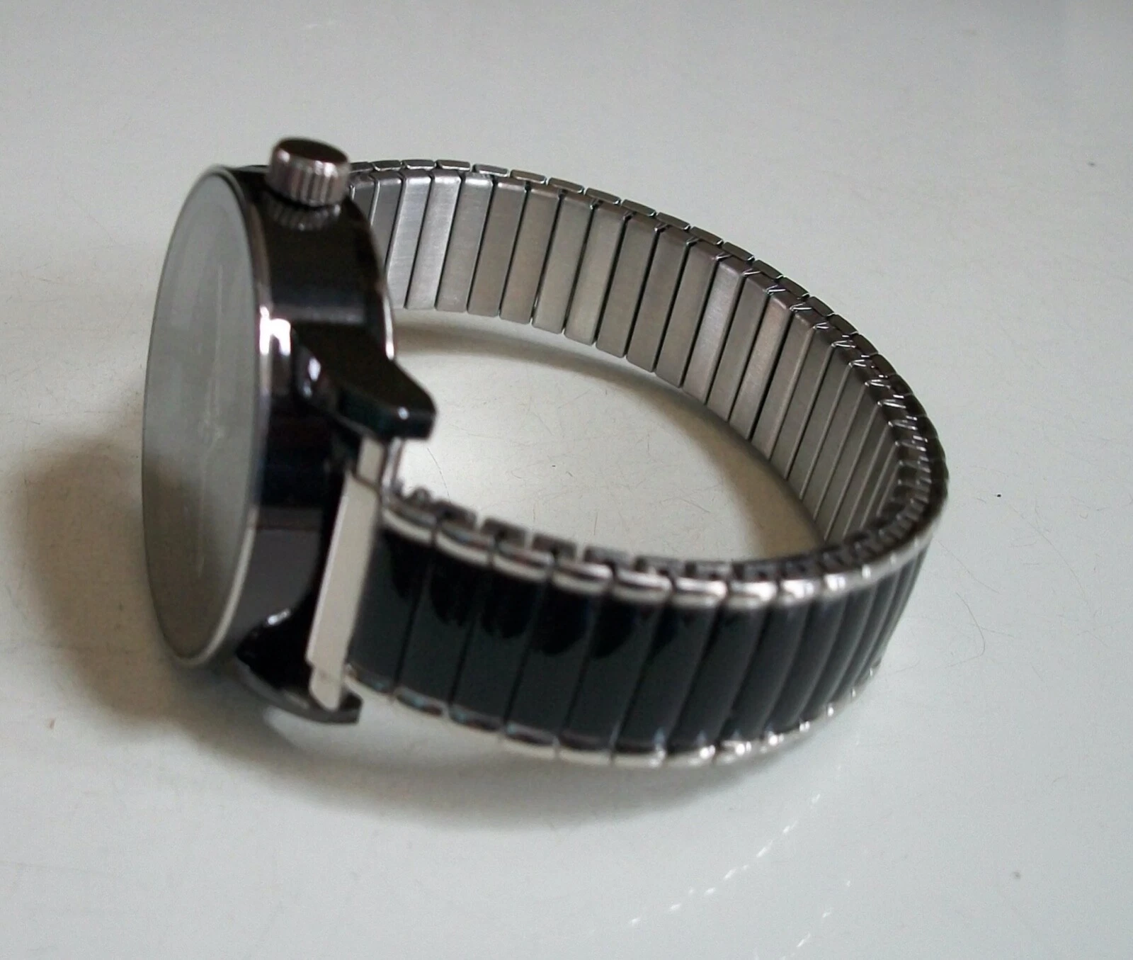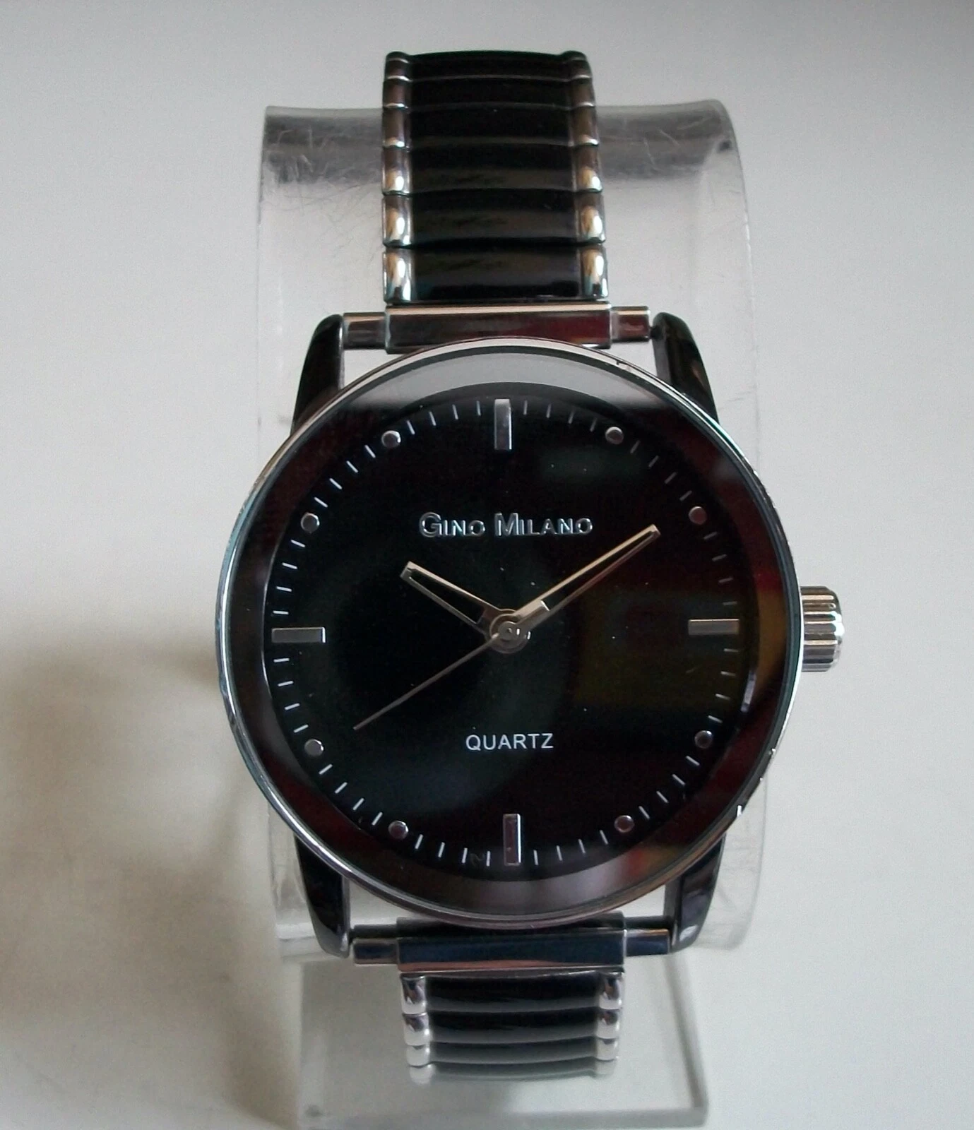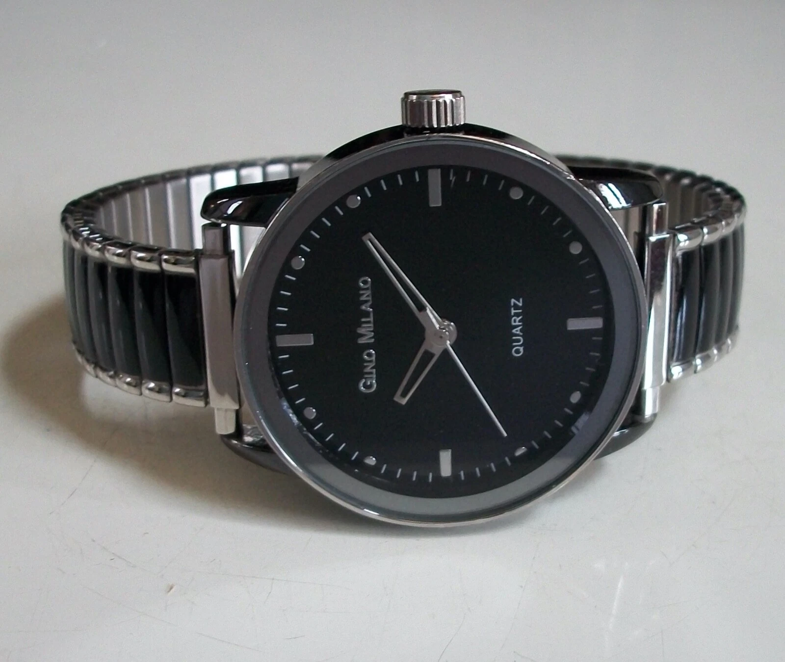 Men's Stretch Band Black/Silver Finish Fashion Casual Watch