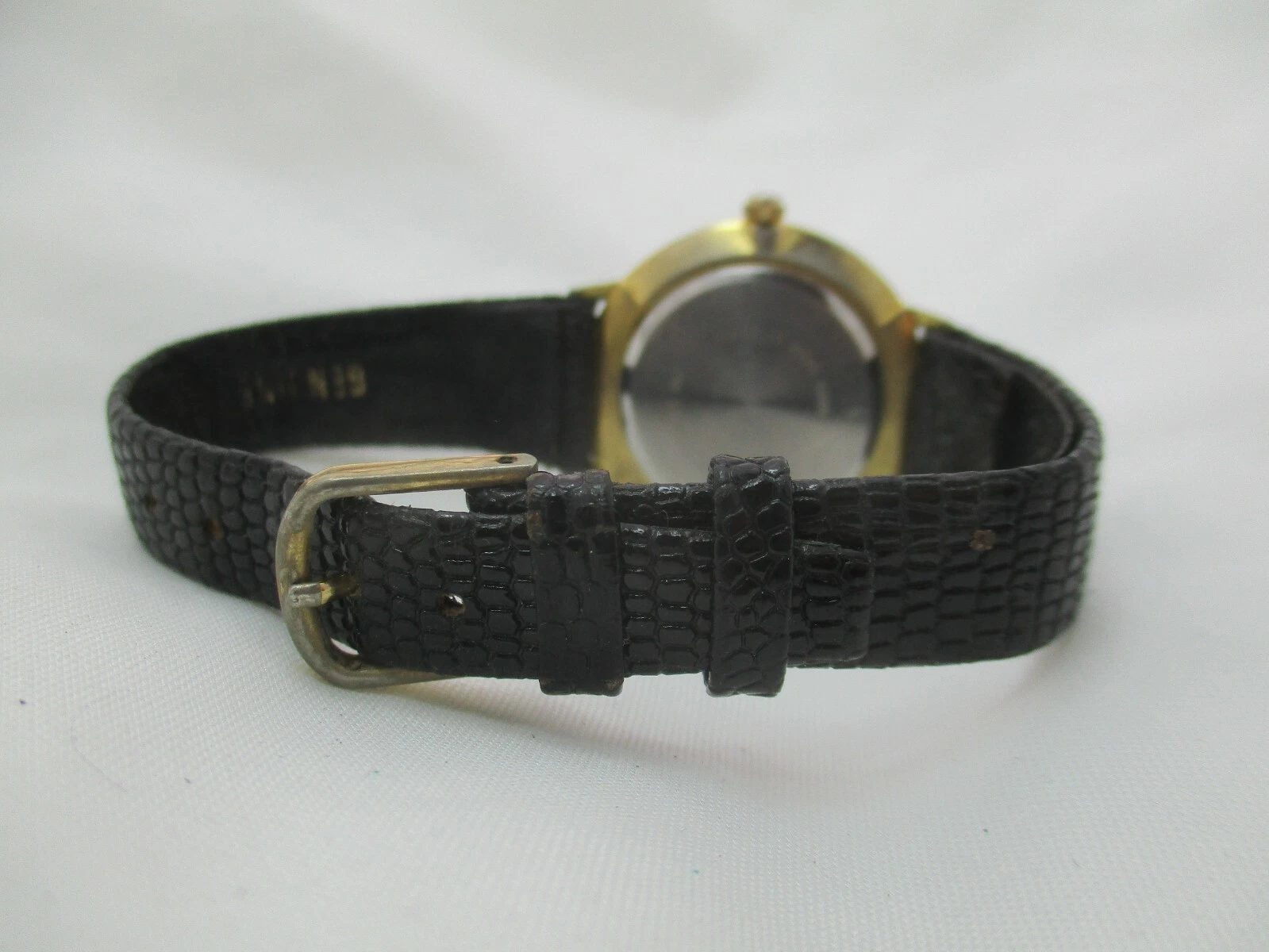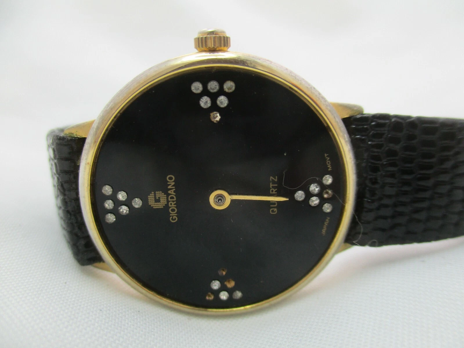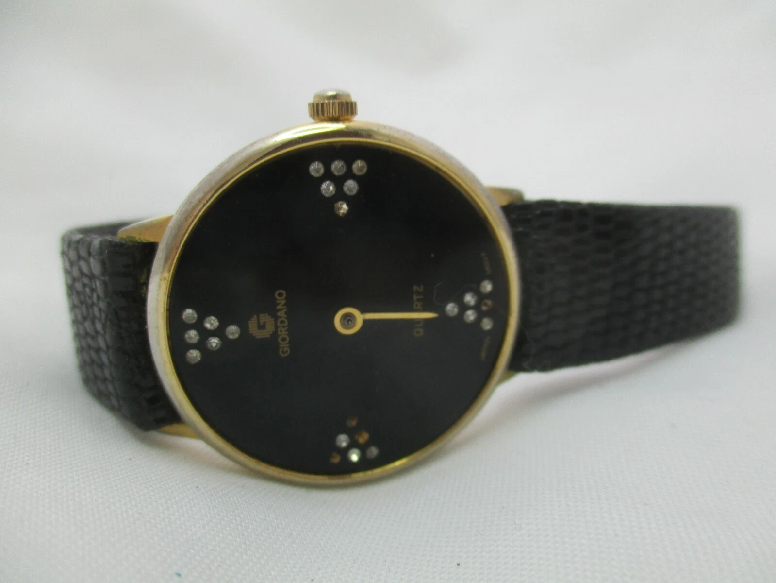 Giordano Analog Wristwatch Black Genuine Leather Buckle Band Gold Tone
