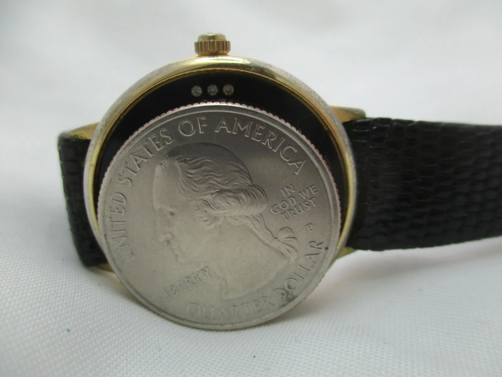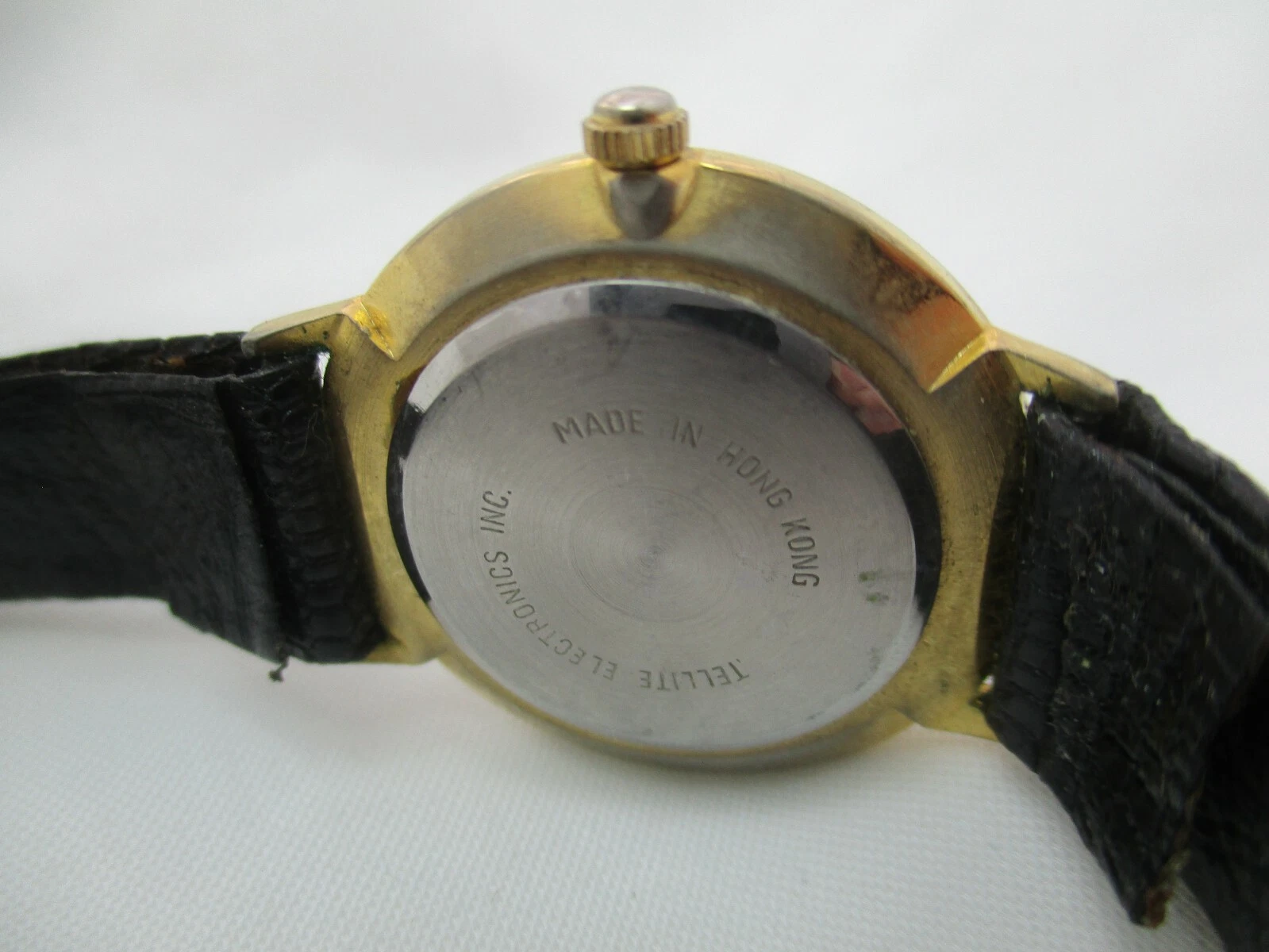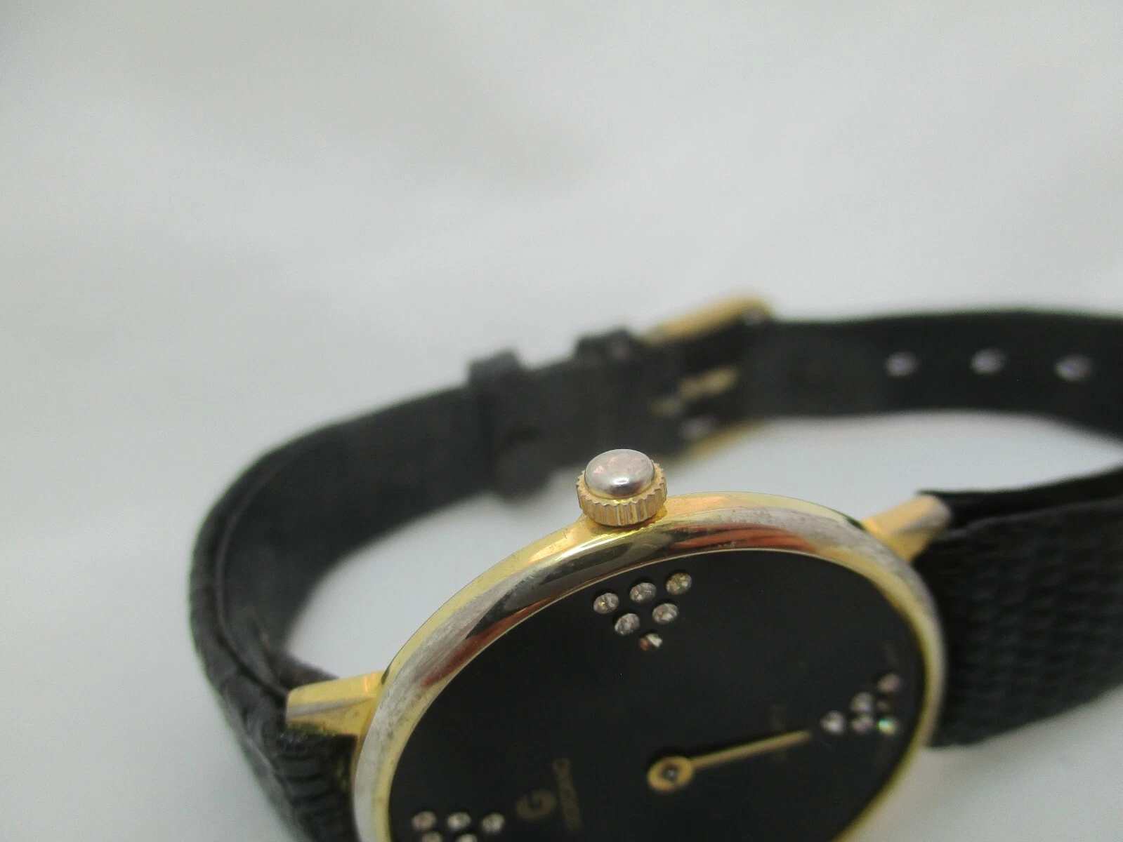 Giordano Analog Wristwatch Black Genuine Leather Buckle Band Gold Tone