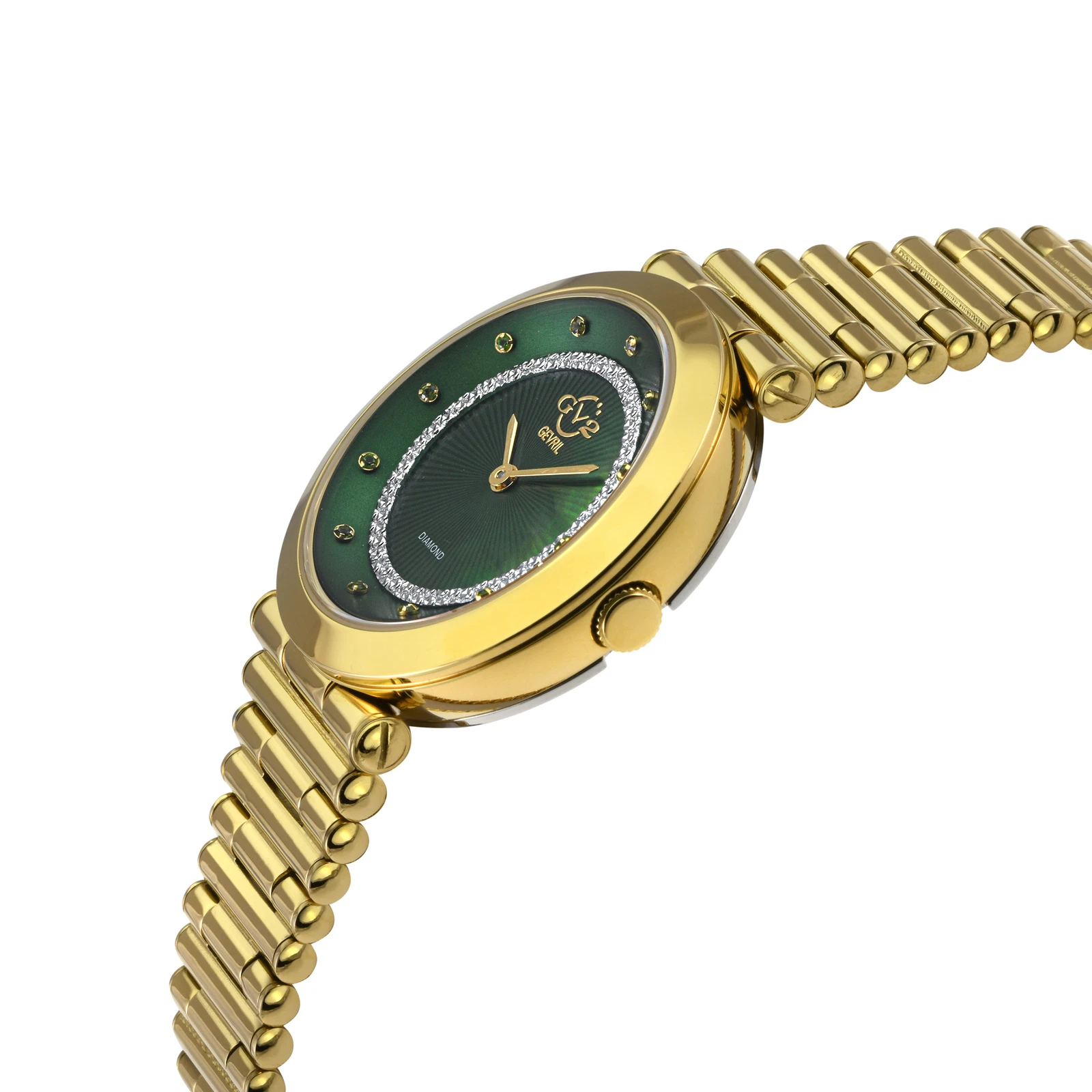 Gv2 By Gevril Women's 14413B Burano Diamond Gold IP Stainless Steel Swiss Watch