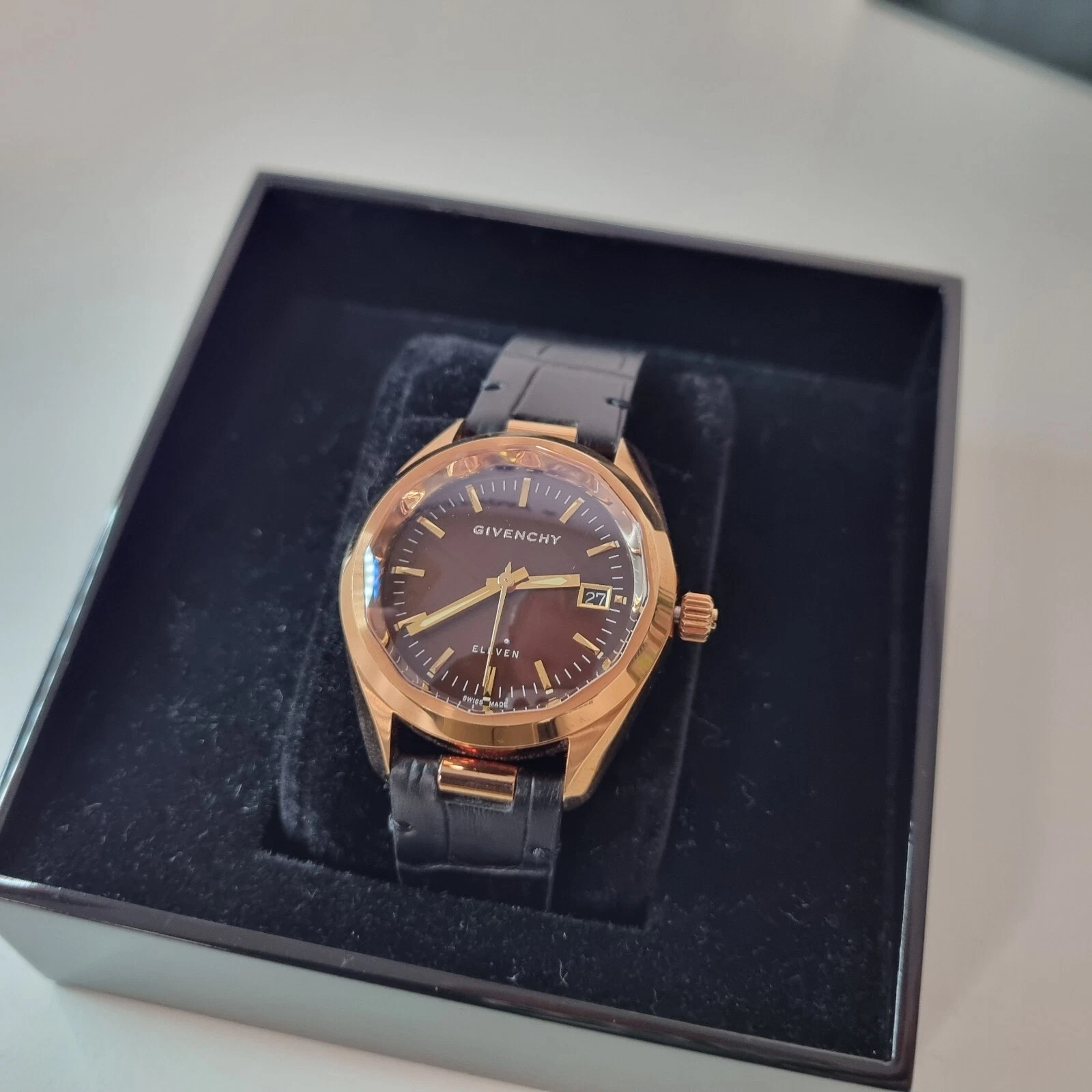 Givenchy Eleven Swiss Made Sapphire Unisex Watch 38 mm Rose/Black New Gift Box