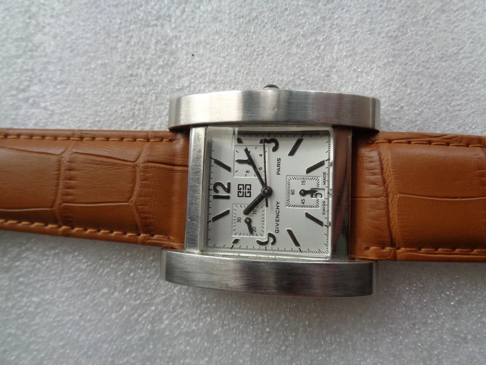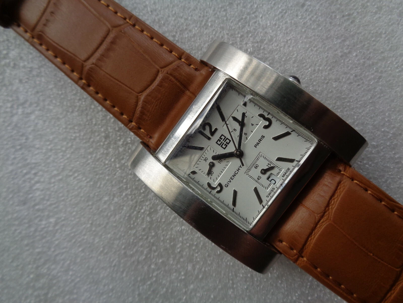 EXCELLENT SQUARE SWISS MADE SS GIVENCHY PARIS MENS QUARTZ CHRONOGRAPH WRISTWATCH