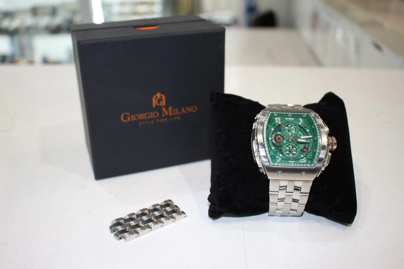 Giorgio Milano Silver Steel Green Dial Men's Chronograph Watch - 233ST18M