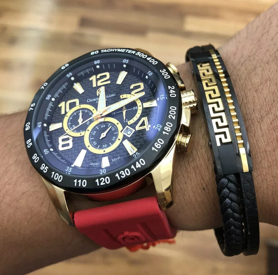 Giorgio Milano Luxury Men’s Watch Gold Black Red Sport, Water Resistance 10 ATM