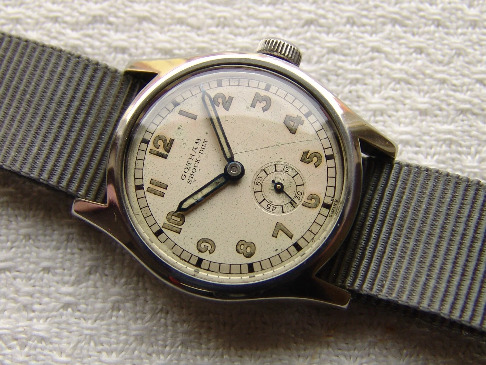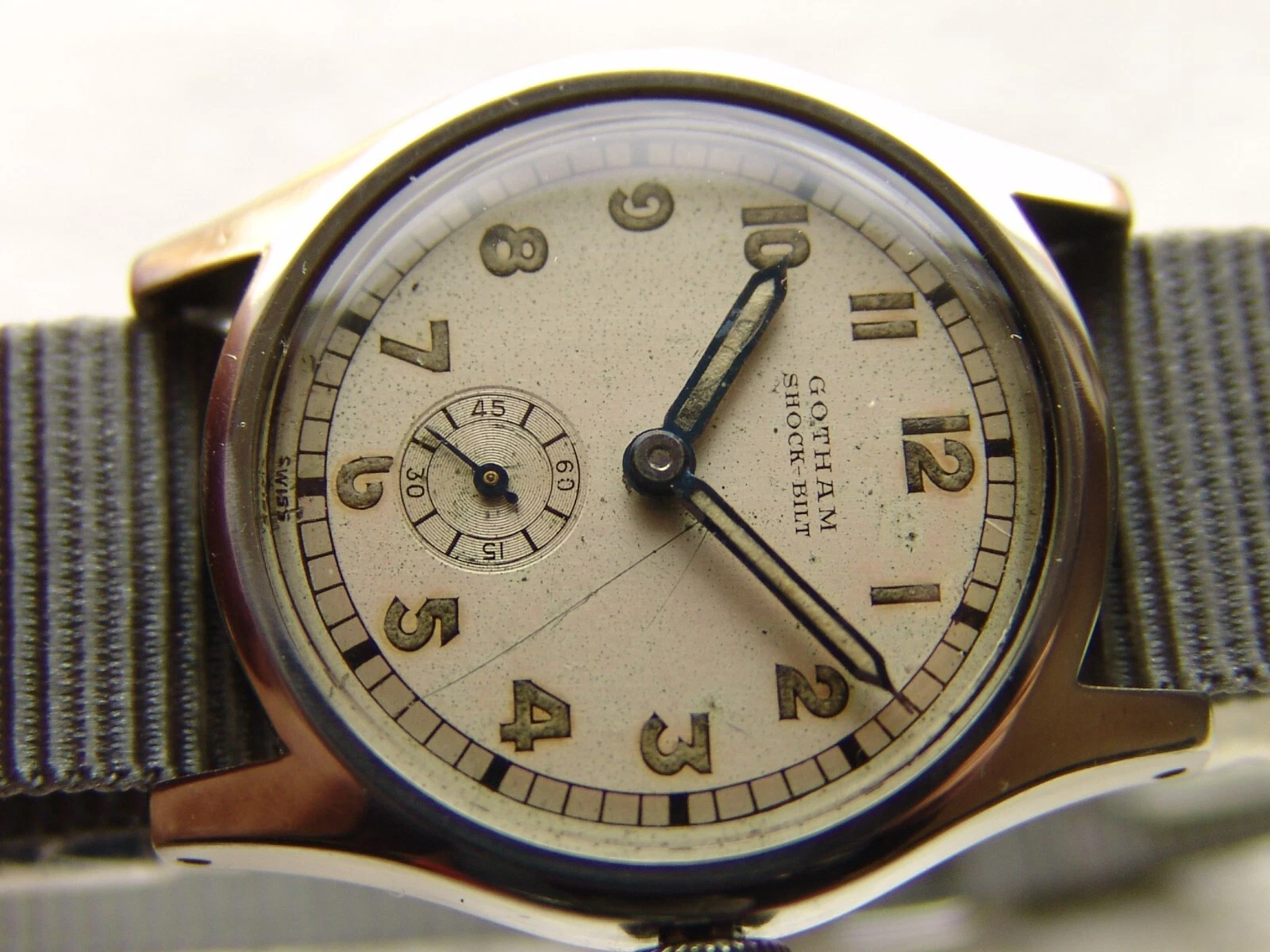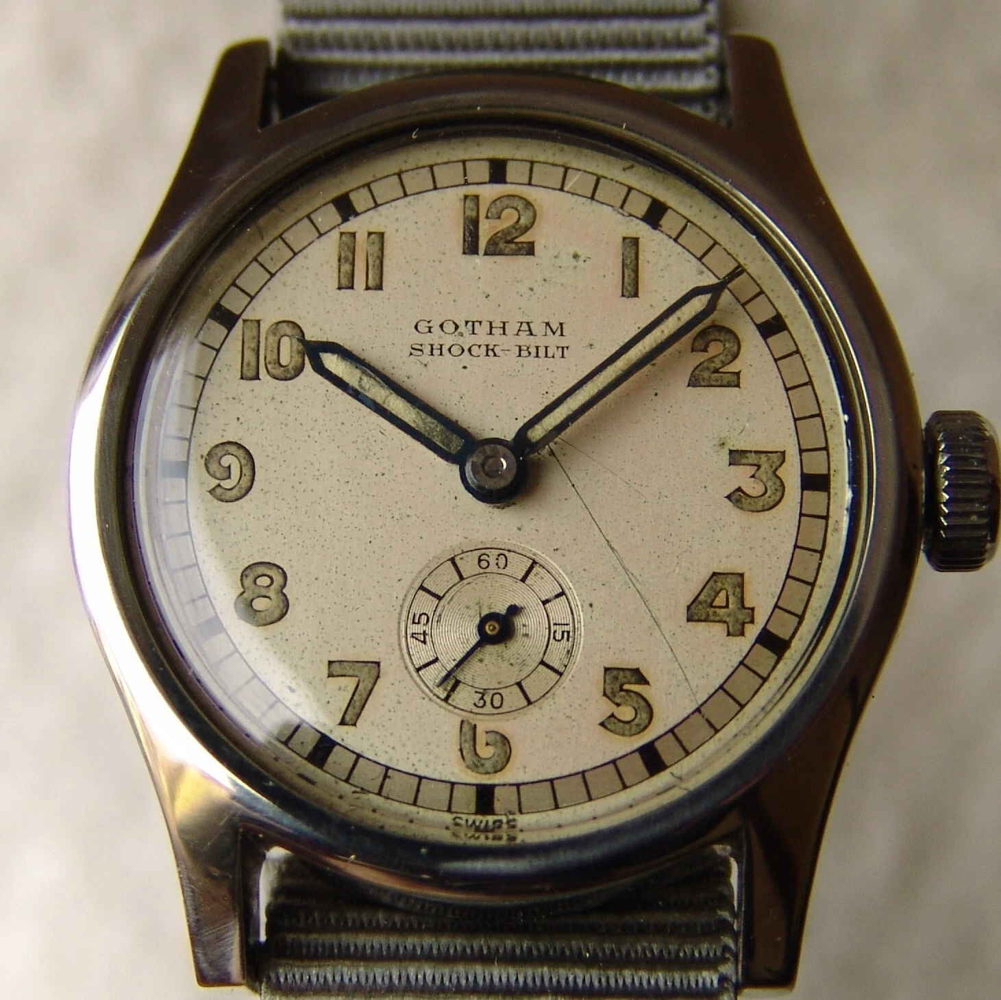 MENS WWII RERIOD vintage GOTHAM WATCH Co bumper steel GOOD CONDITION WRISTWATCH
