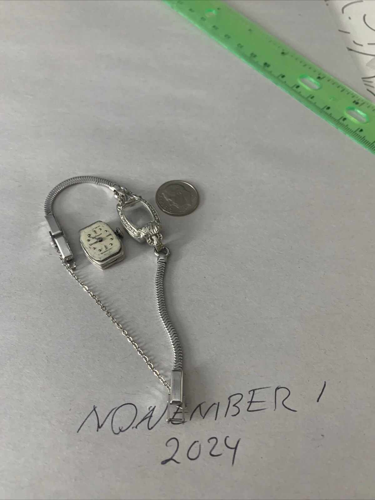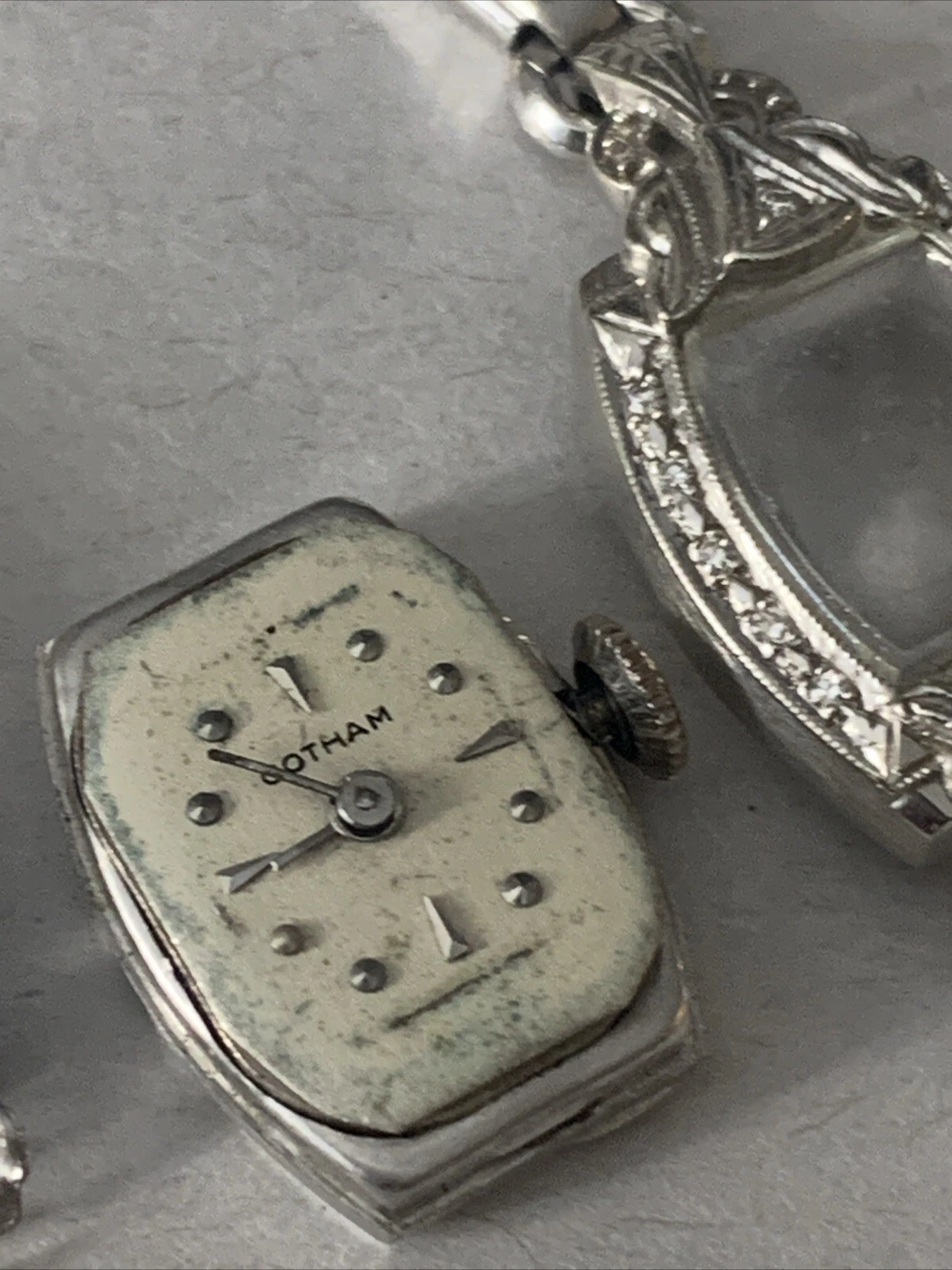 Ladies Vintage 14 K White Gold Watch By Gotham On GF Band,runs Well