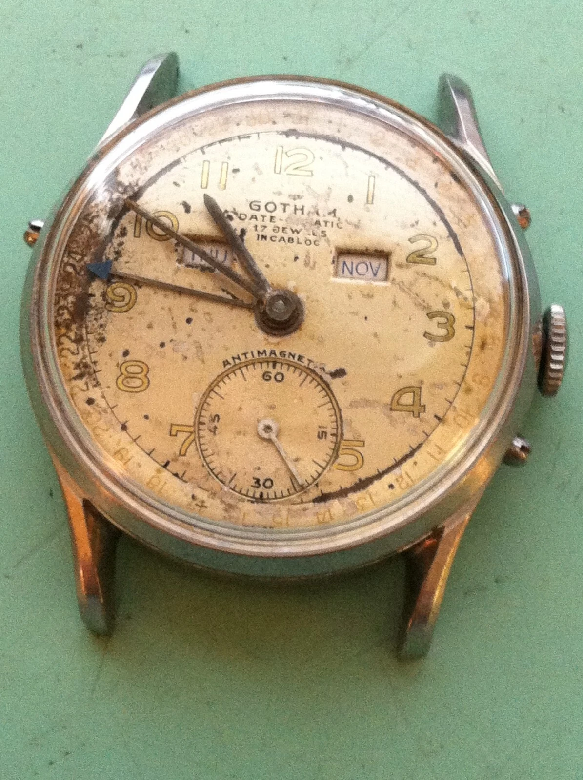 VINTAGE GOTHAM DATE OMATIC TRIPLE DATE INCABLOC WATCH
