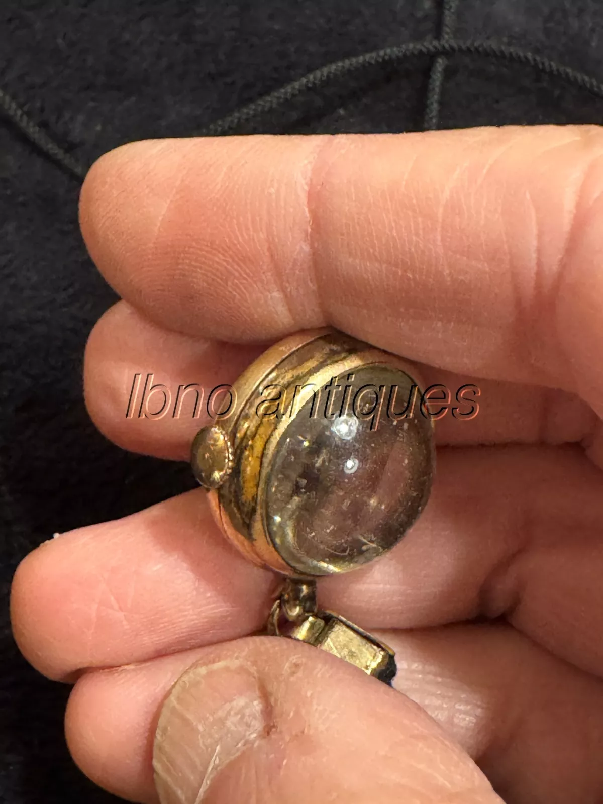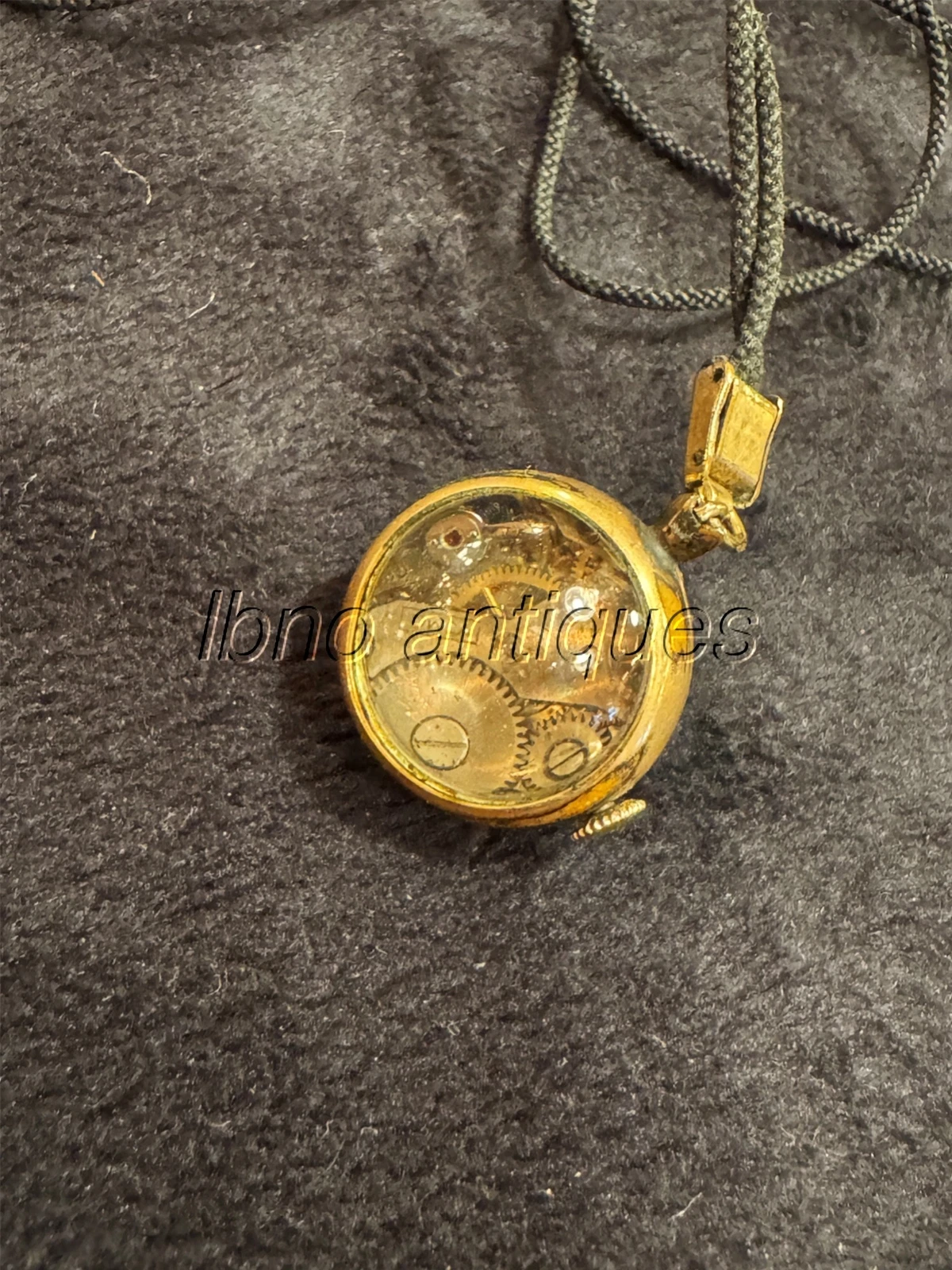 RARE & CHARMING 1940s 10kt GOLD GOTHAM MECHANICAL ORB WATCH DISPLAY CASE PENDANT