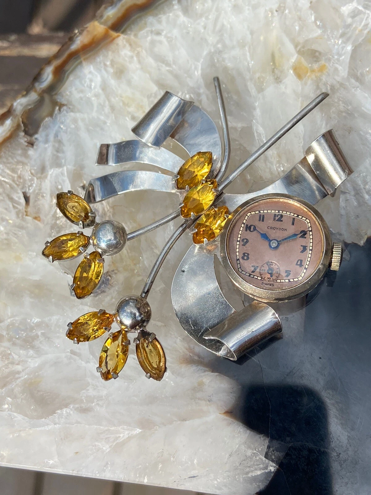 STERLING SILVER Art Deco Croydon Ladies Lapel Watch SWISS # 2125