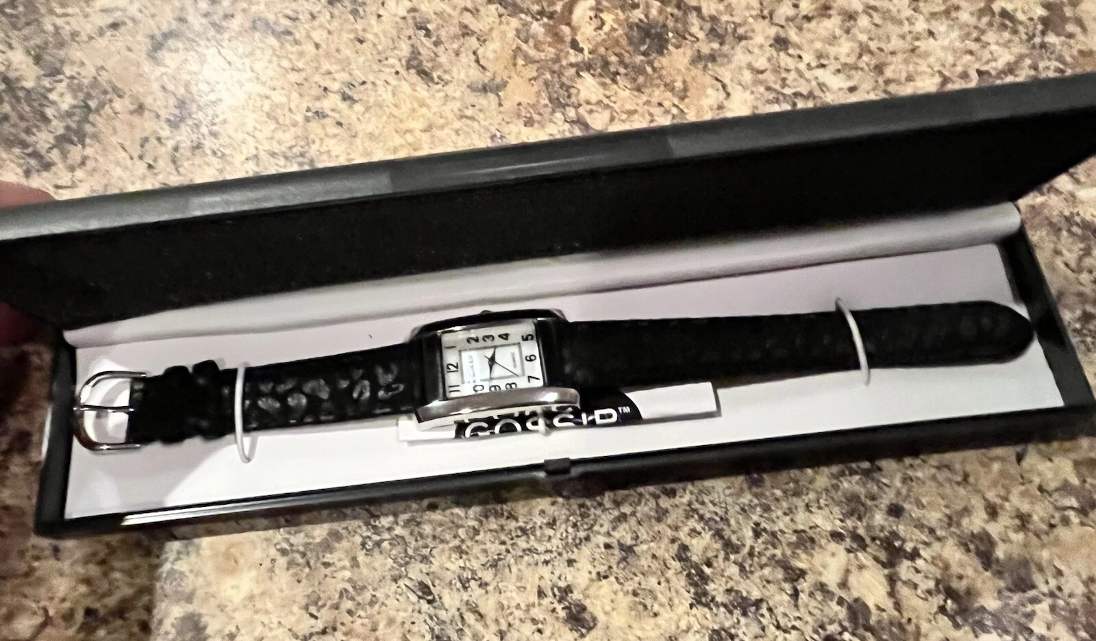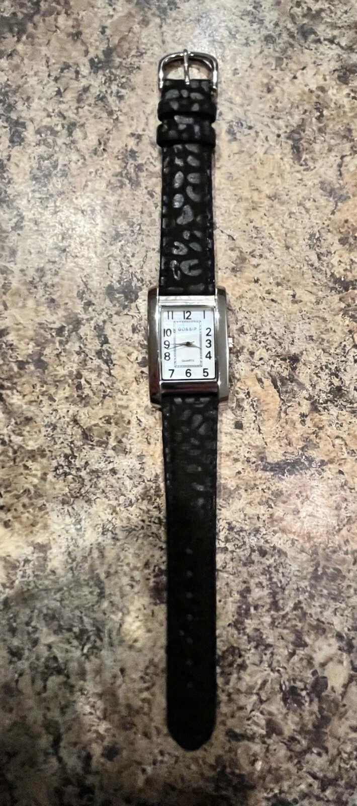 Gossip Watch Womens 26mm Tank Style MOP Dial Silver Tone Black Band New Battery