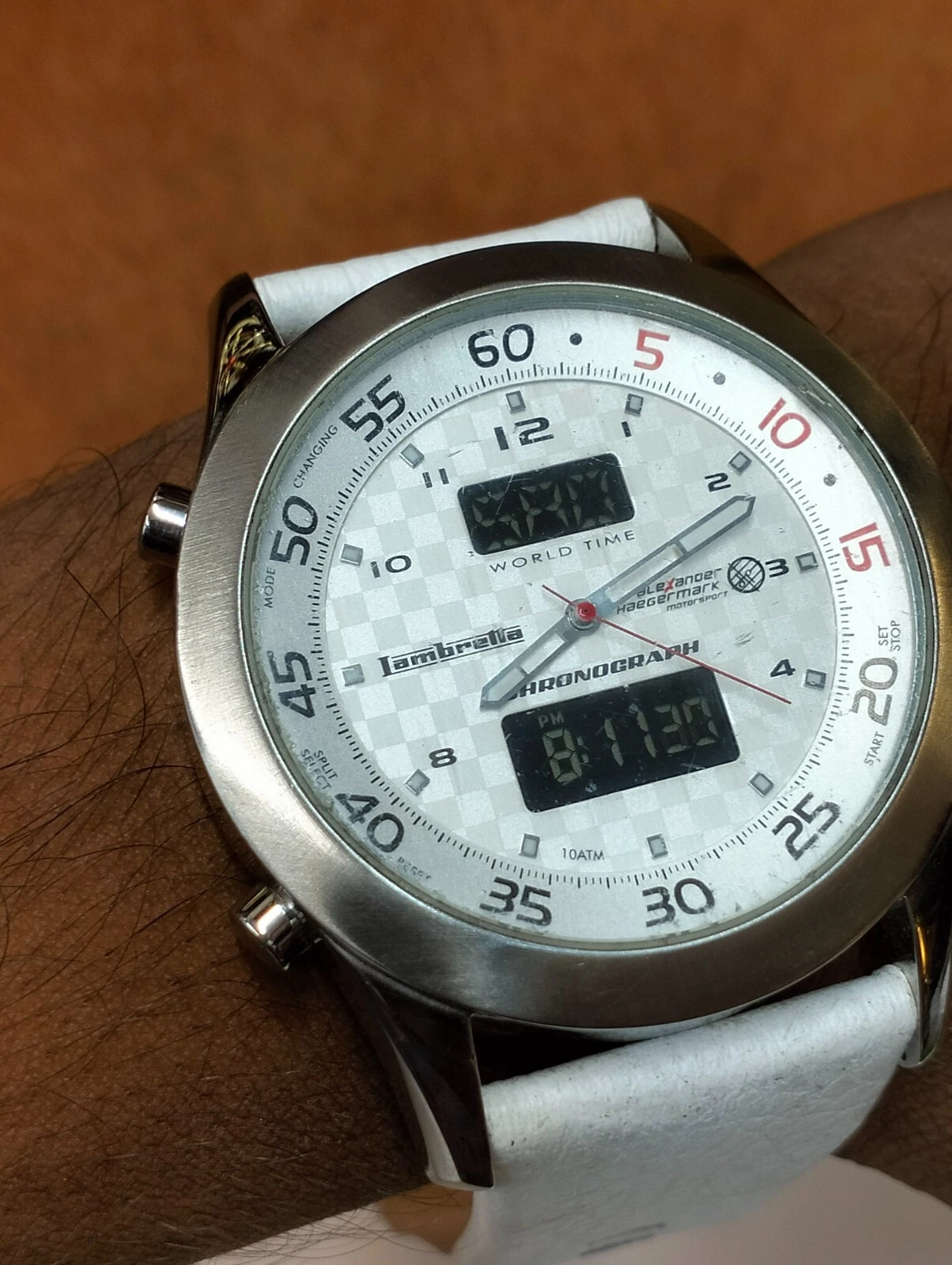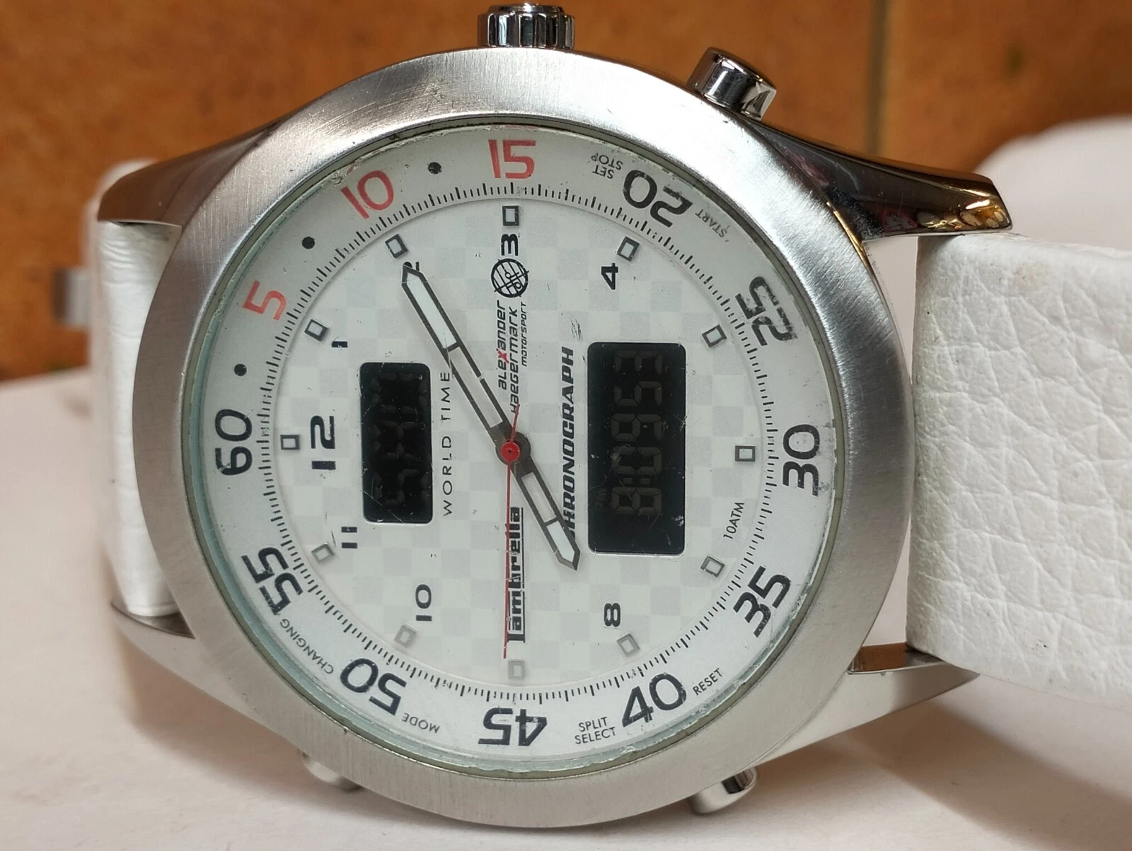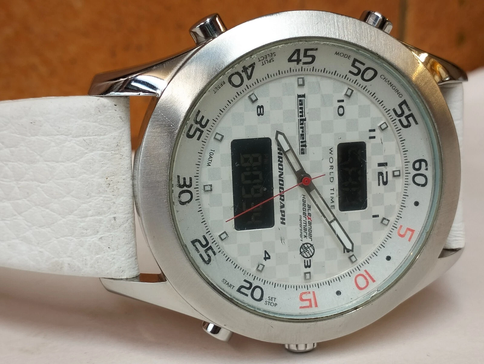 LAMBRETTA ANA-DIGI QUARTZ WHITE DIAL MEN'S MINT FULLY WORKING VINTAGE WATCH