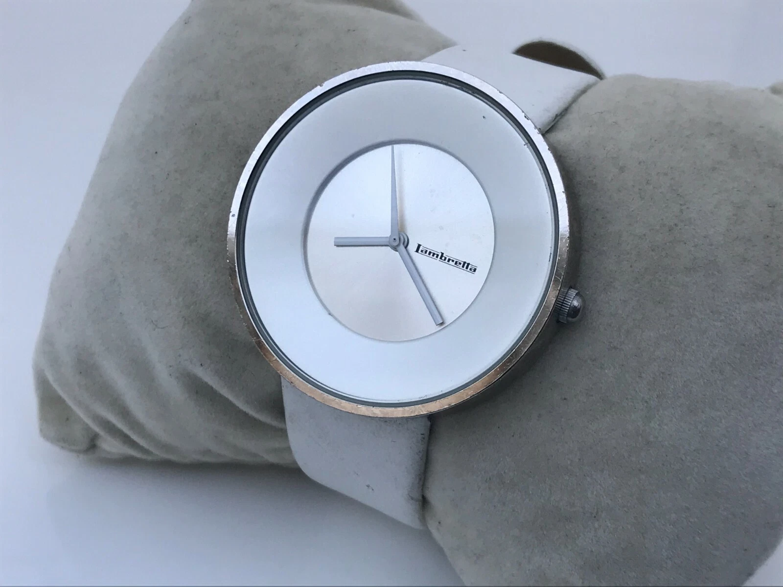 Lambretta Watch White Leather Band Analog Quartz Movement Wrist Watch Rare