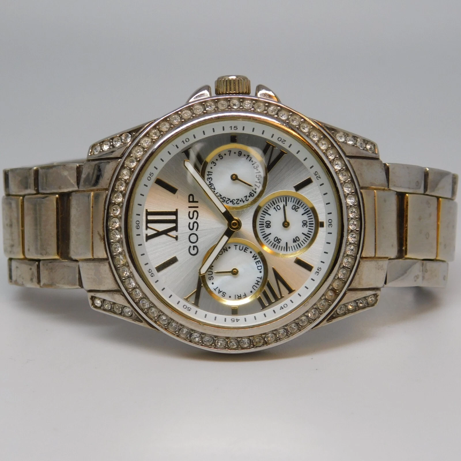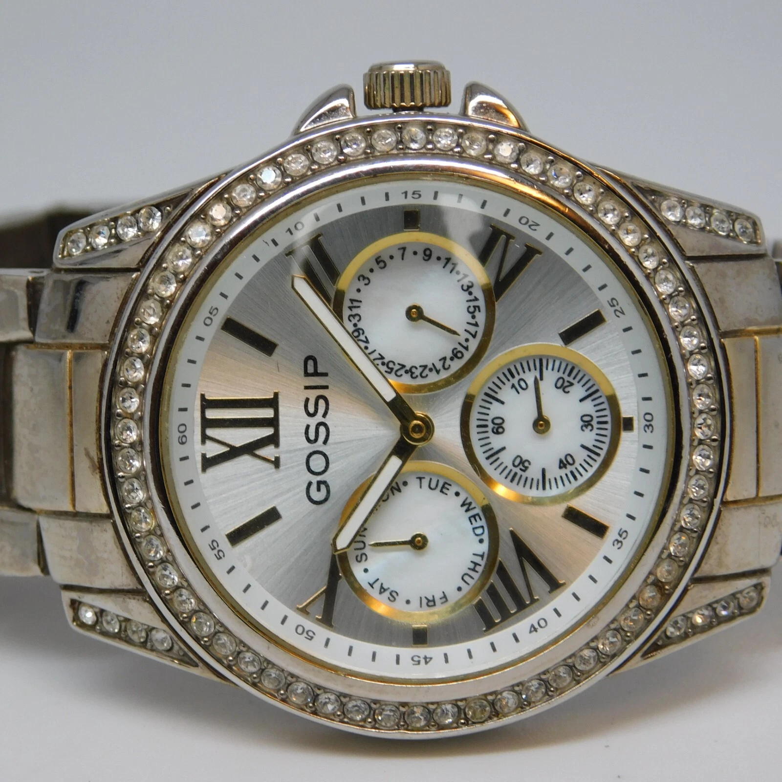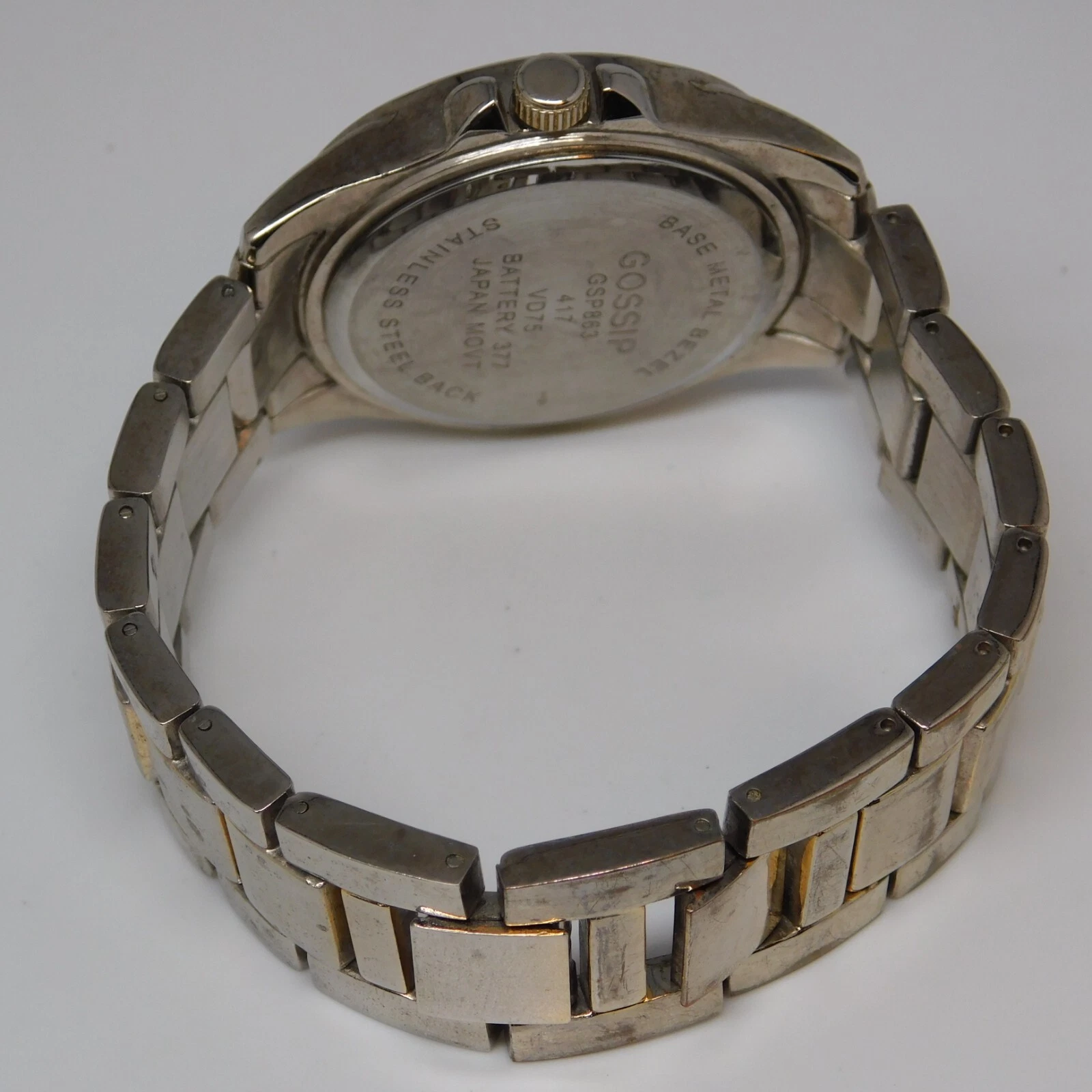 GOSSIP GSP863 Silver Tone Quartz Analog Women's Watch Sz. 7" New Battery