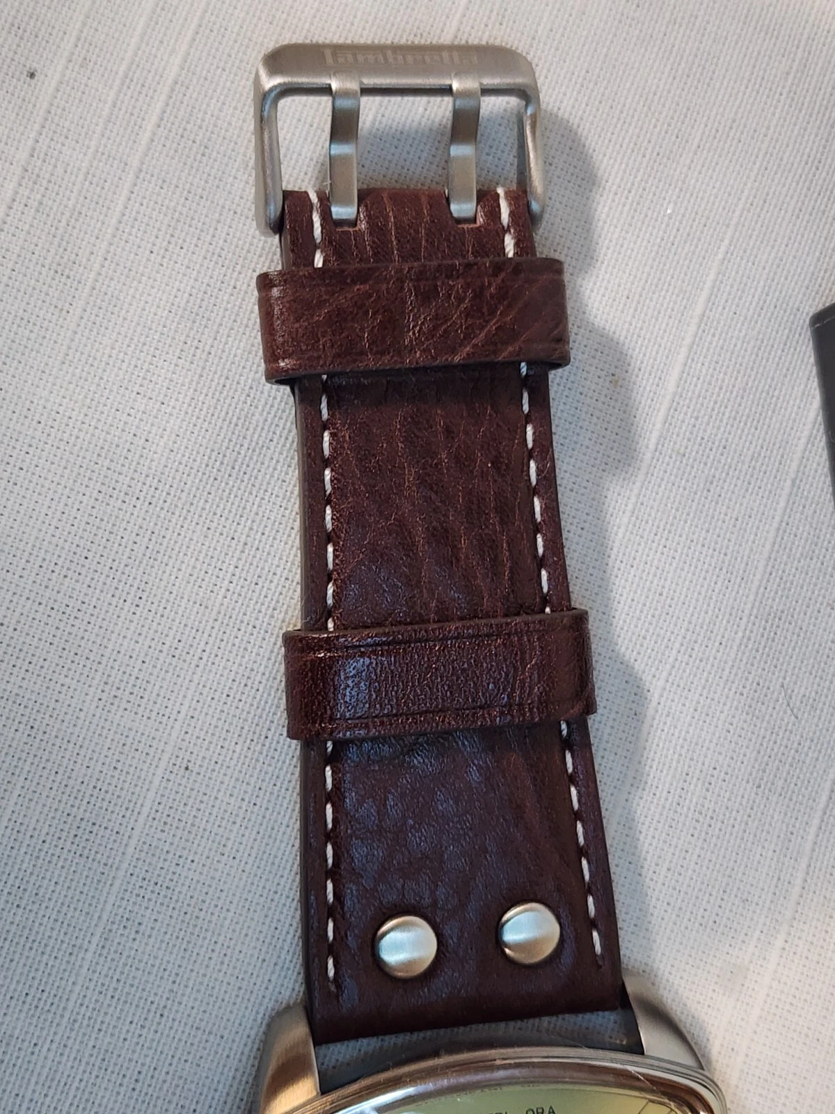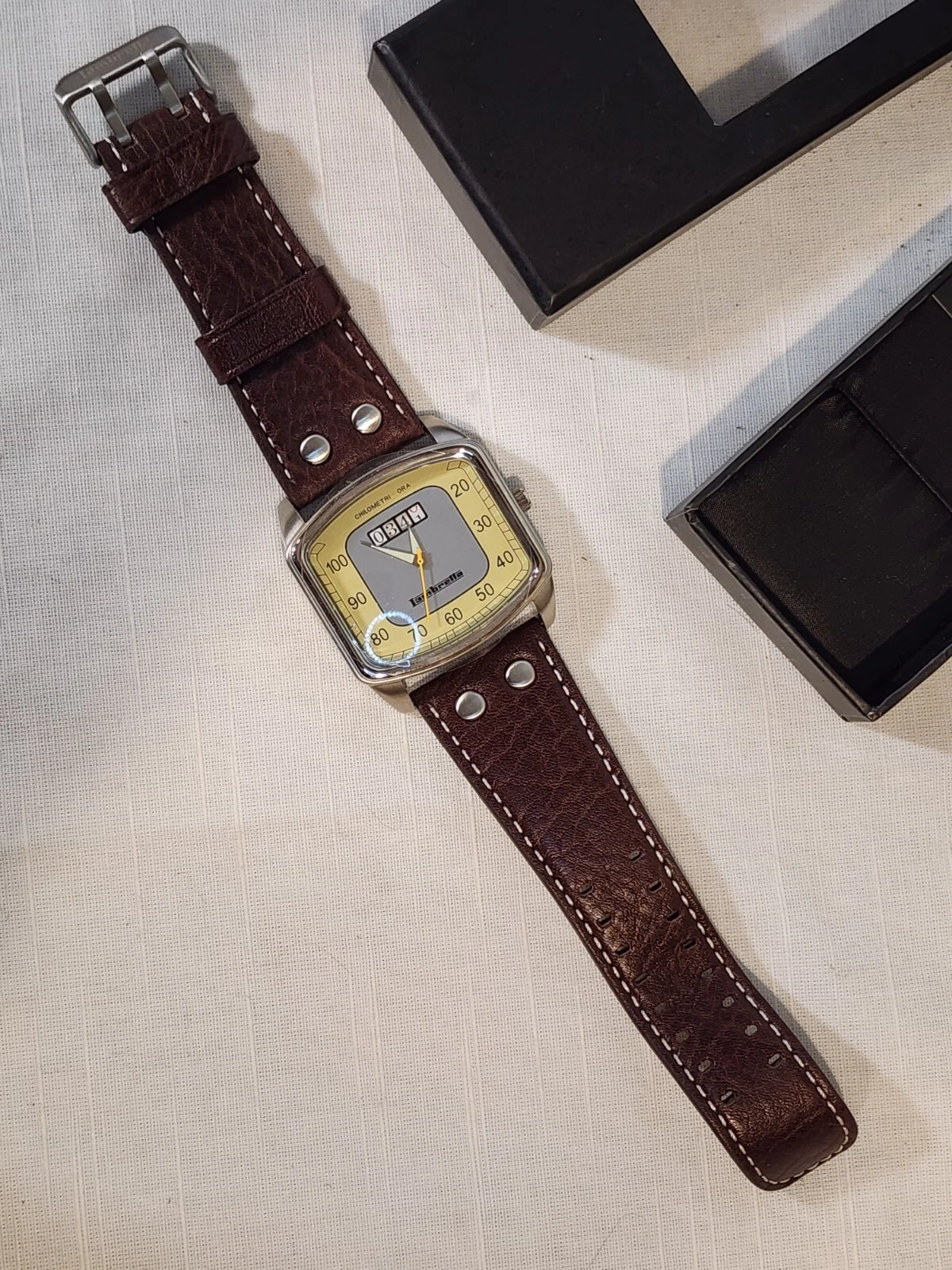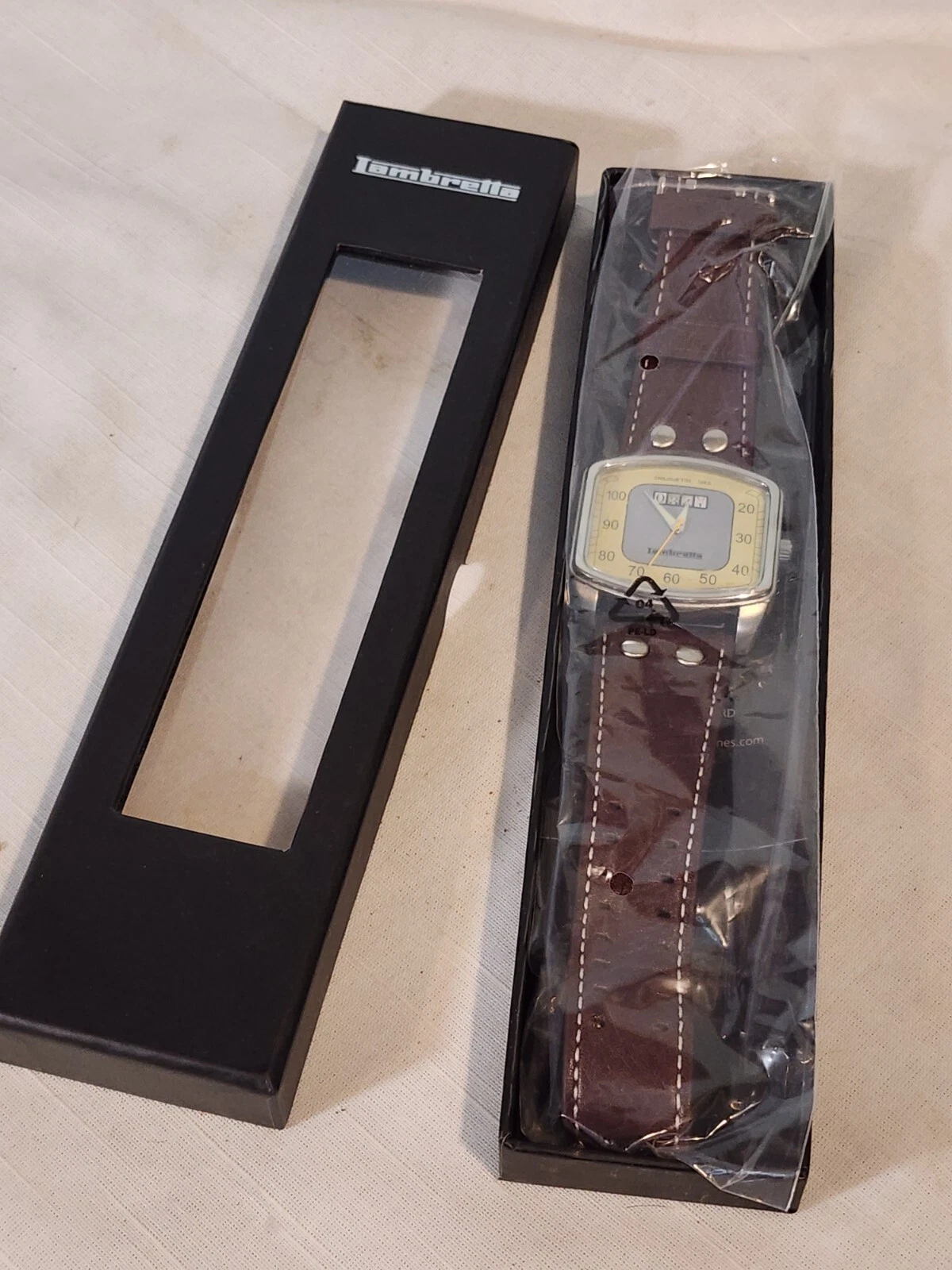 LAMBRETTA Chilometri Ora Quartz Wristwatch Brown Leather Watch Orig. Box, NICE!