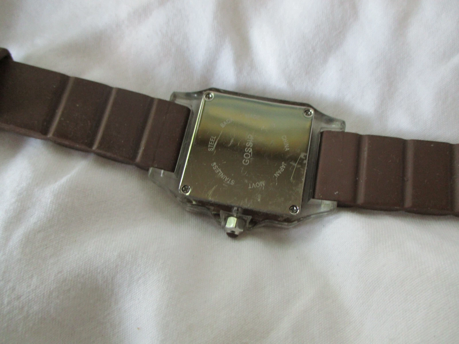Gossip Clear, Brown, & Silver Toned STYLISH Wristwatch w/ Adjustable Band