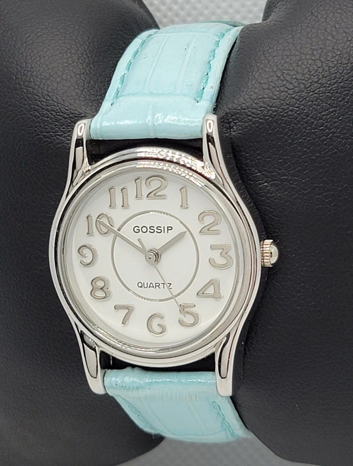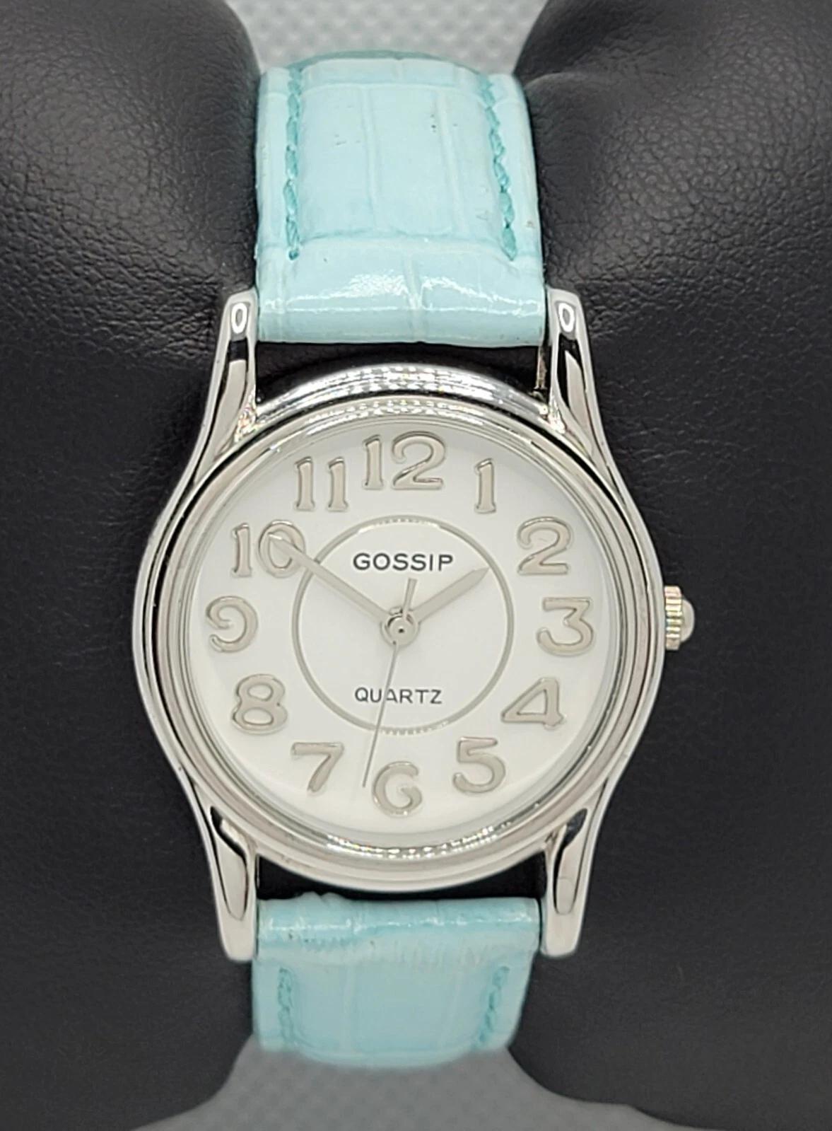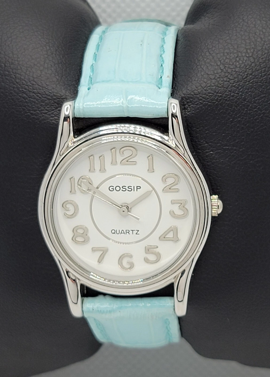 Ladies Gossip Round Silver Tone Blue Leather Band Analog Watch F9