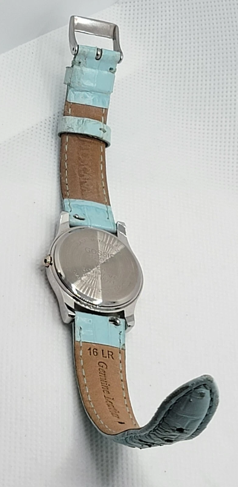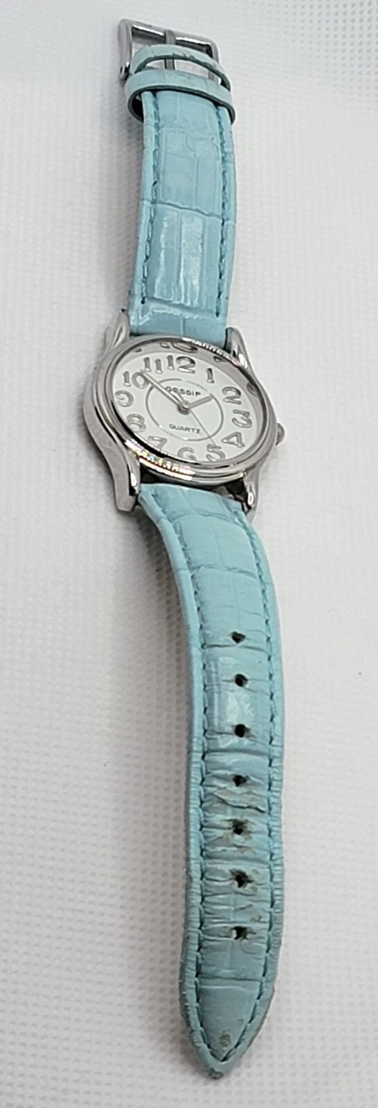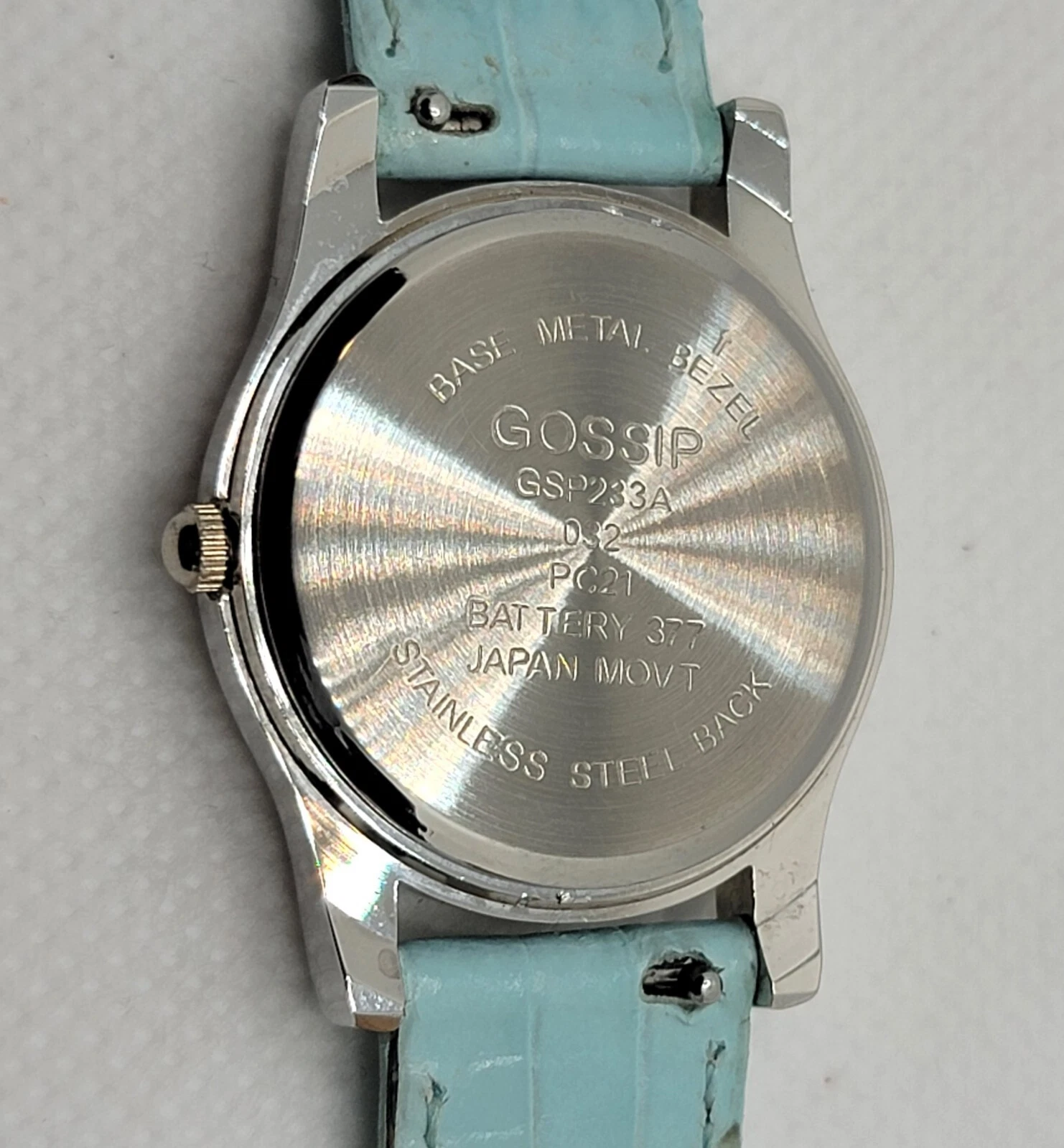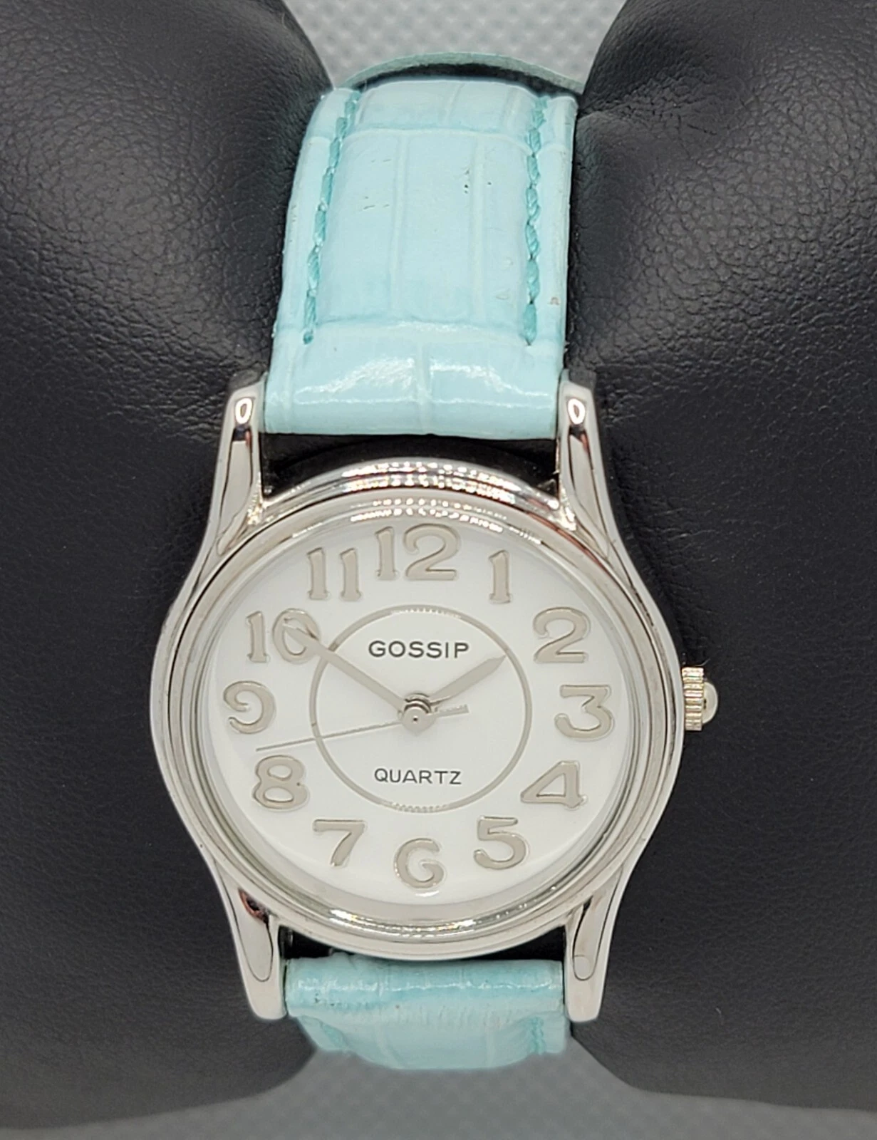 Ladies Gossip Round Silver Tone Blue Leather Band Analog Watch F9