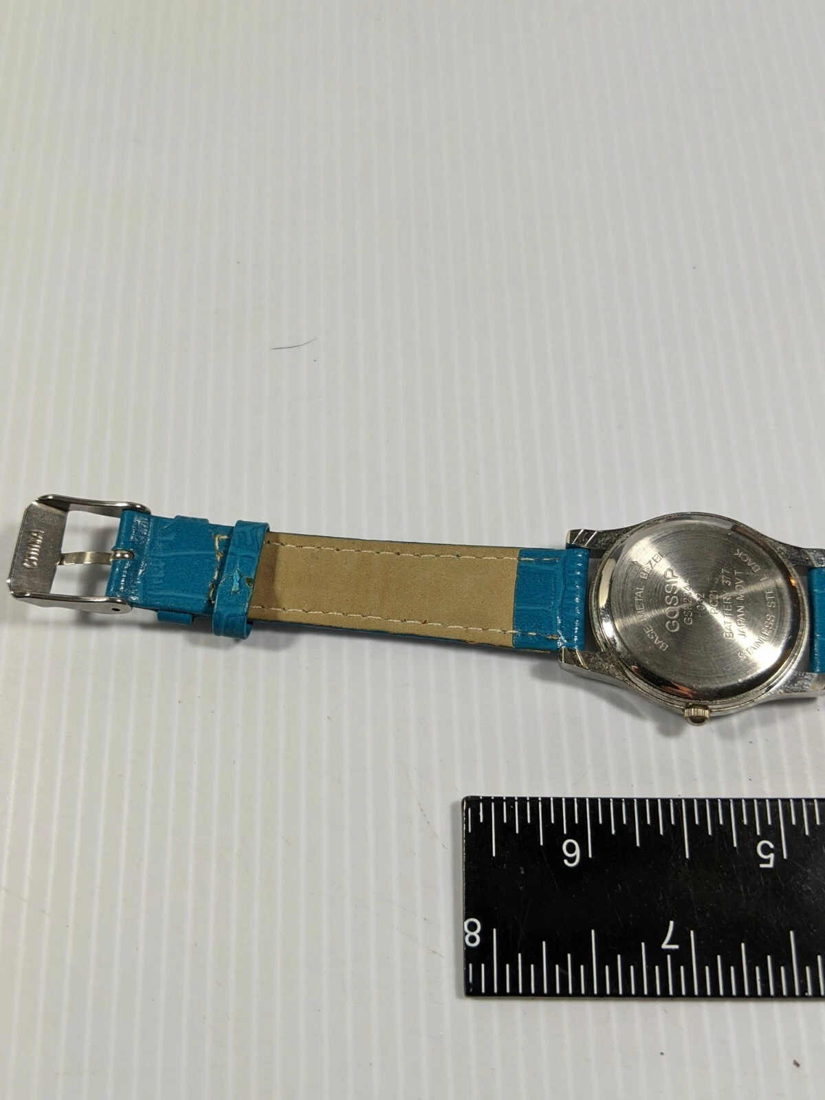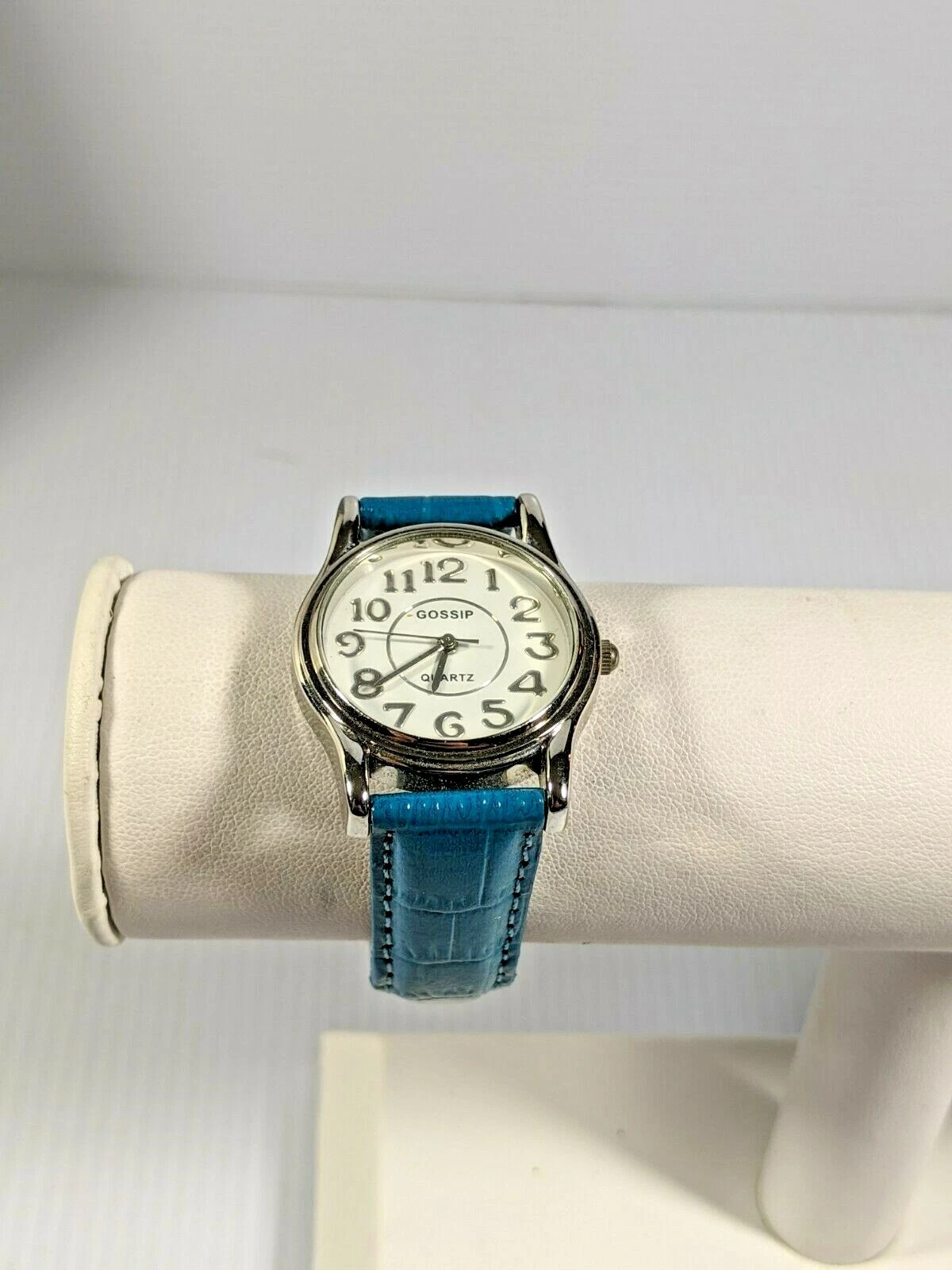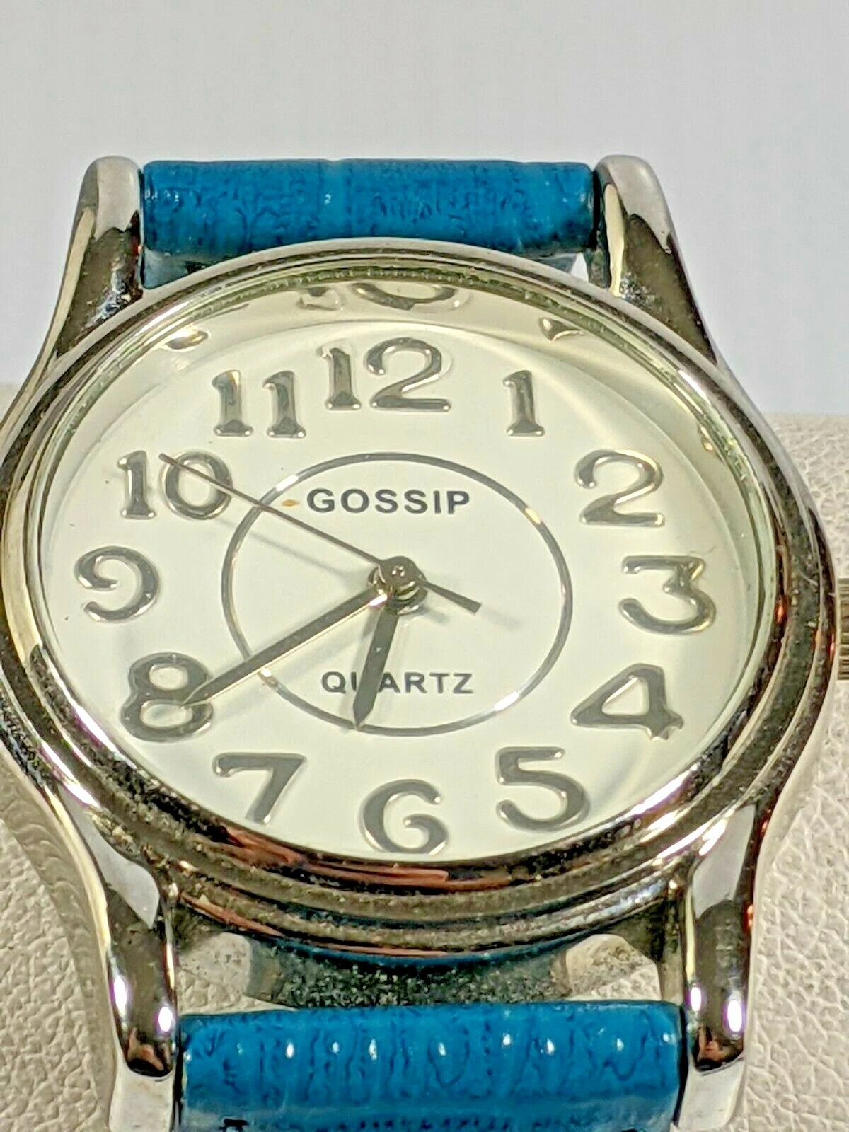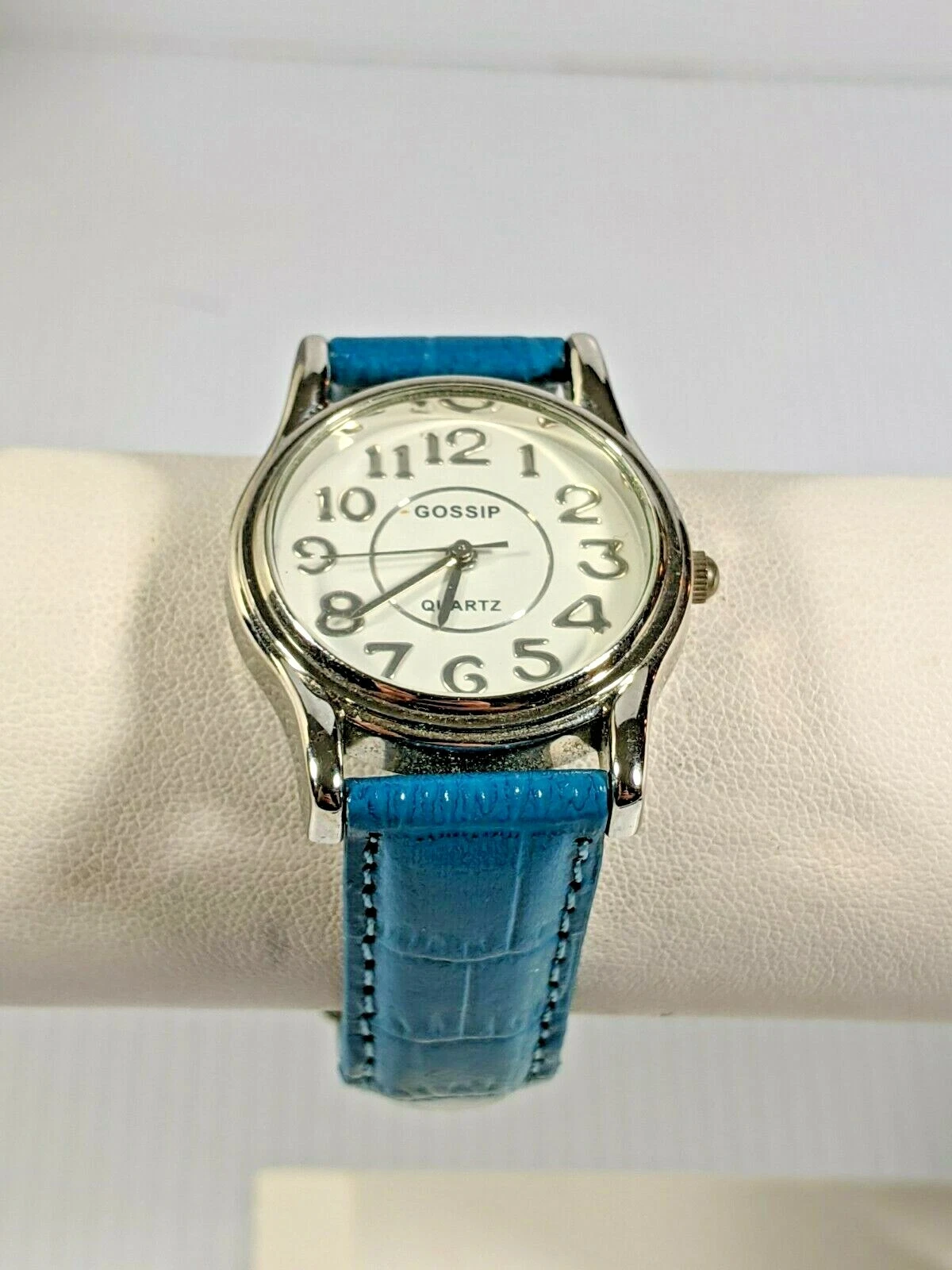 Gossip Silver Tone Blue Leather Band Watch 8 Inch