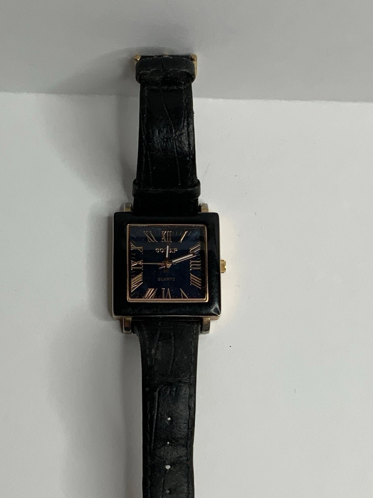 Gossip Square Leather Band Watch Colorful Blue Dial Men’s Wristwatch