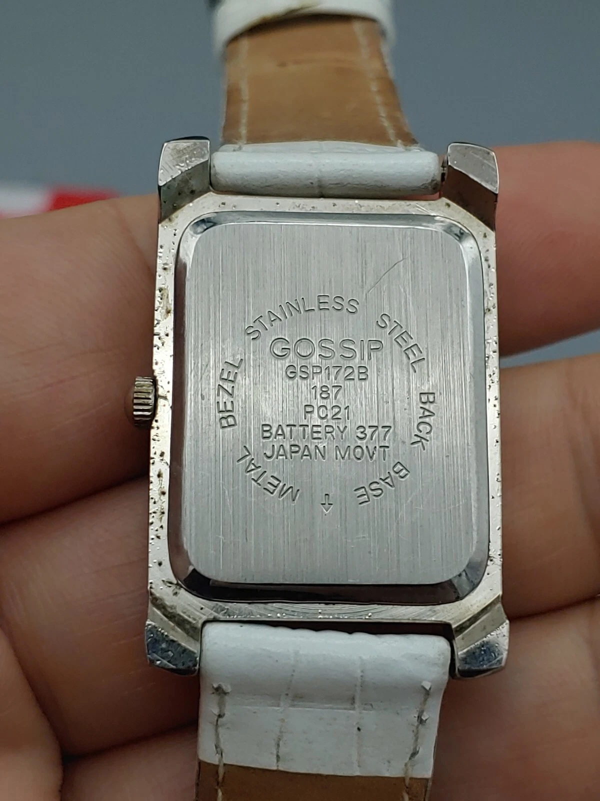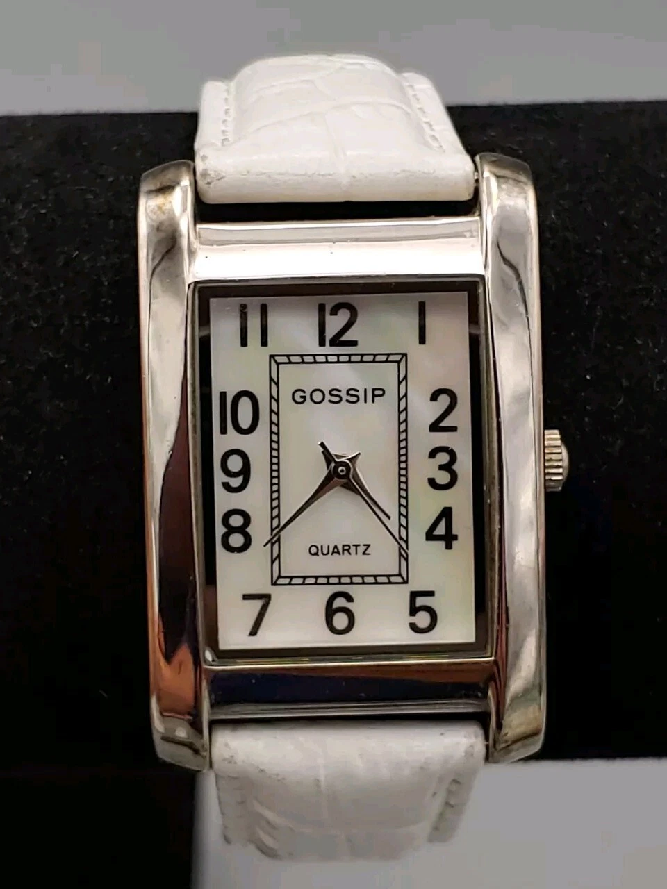 GOSSIP Women's Watch GSP172B MOP Dial Leather Quartz White 26mm New Battery