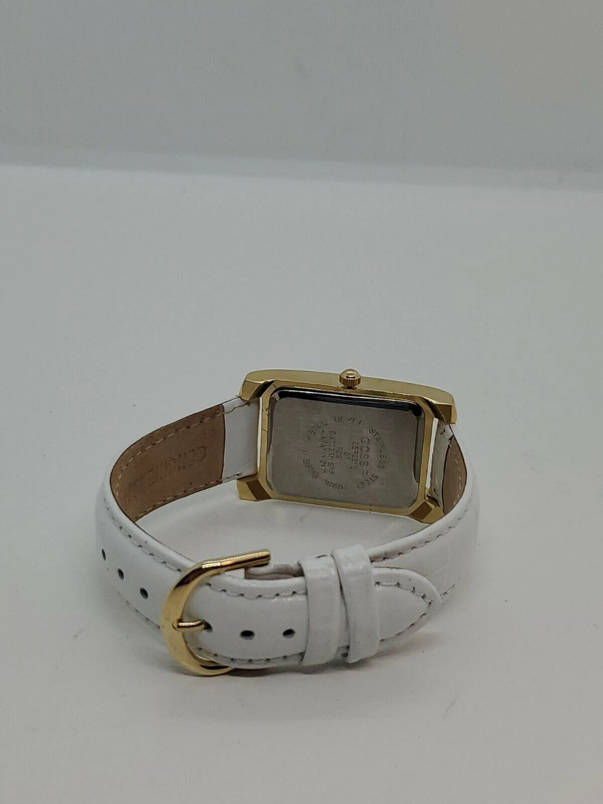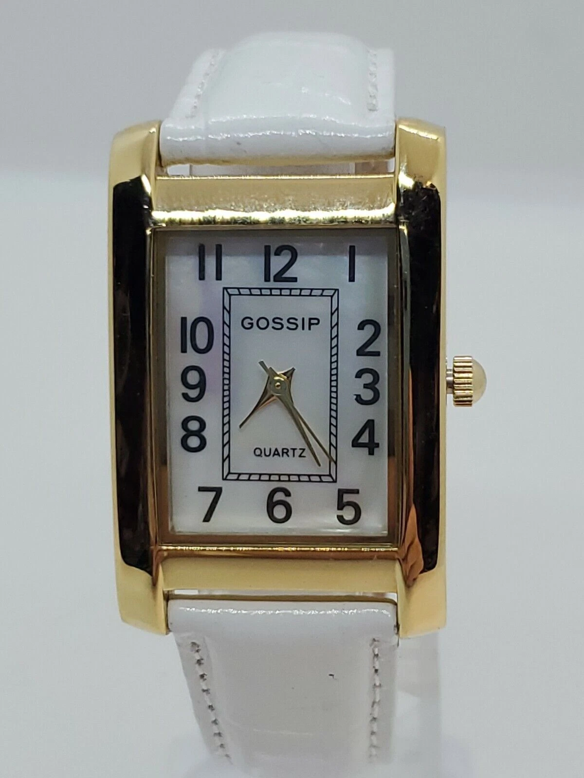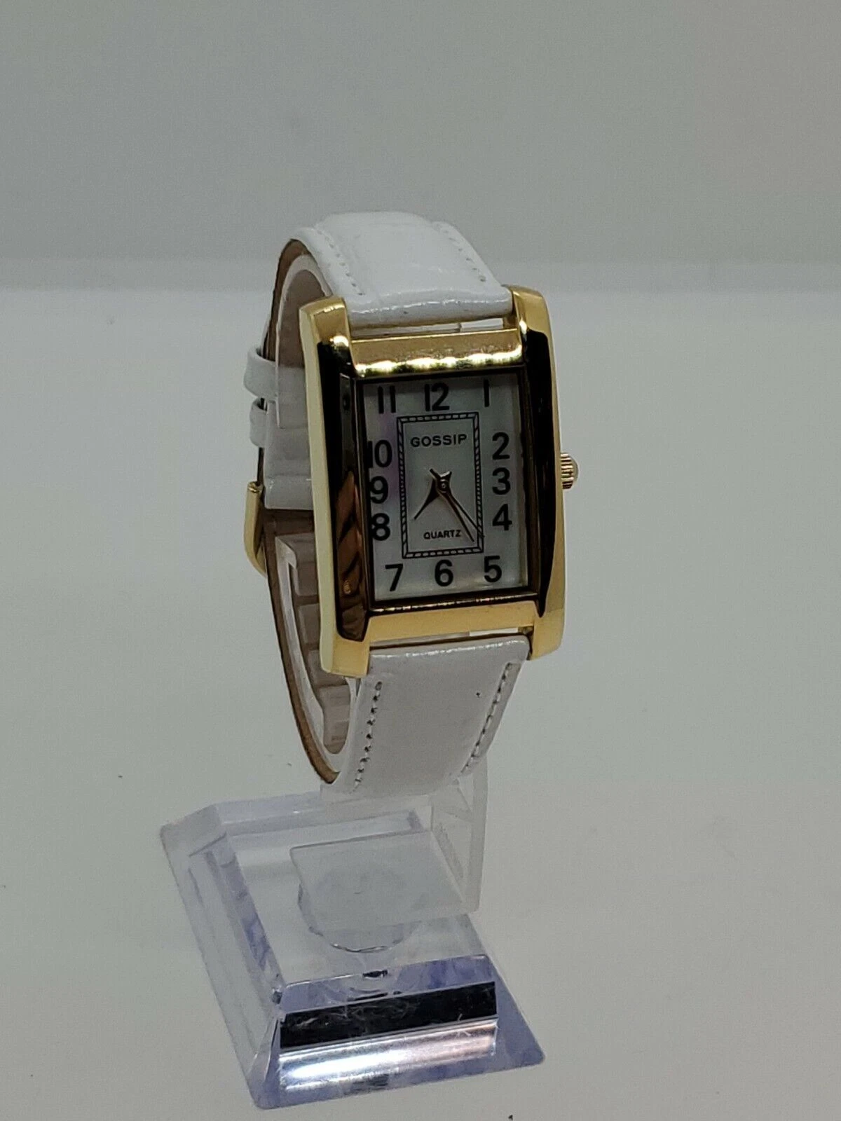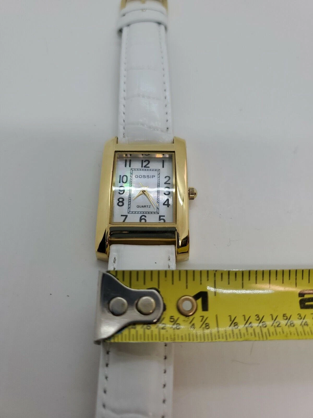 GOSSIP Ladies Quartz Watch Gold-Tone Genuine Leather White Croc Strap NWOT New