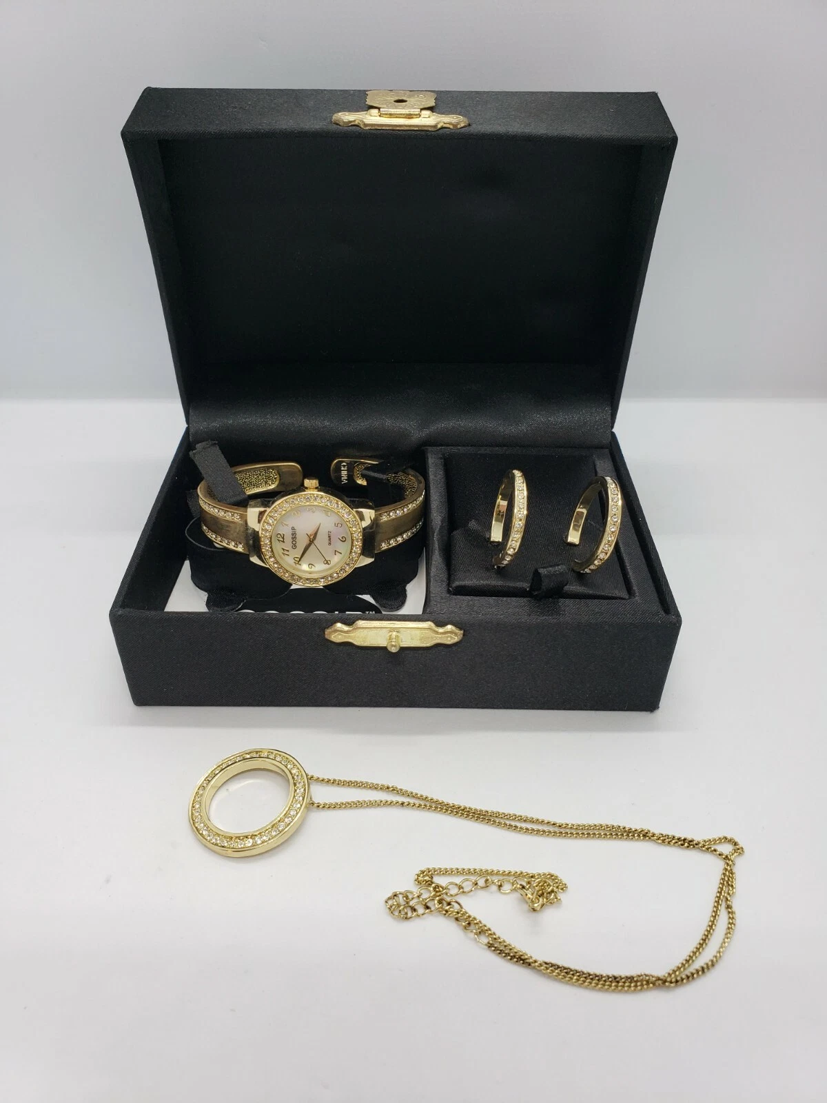 Gossip Women's Gold Tone Bangle Watch Gift Set Earrings Necklace