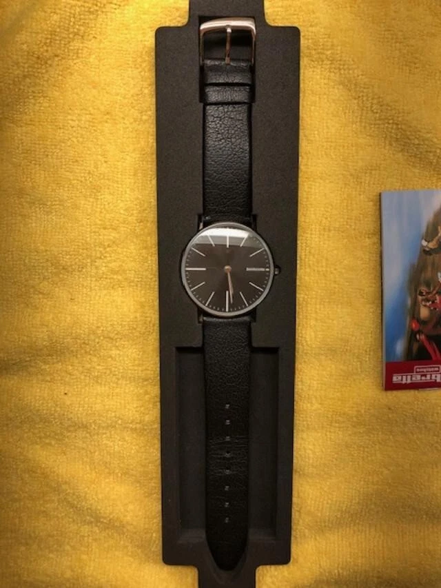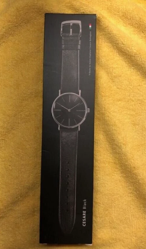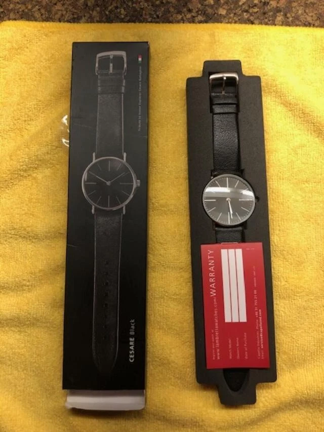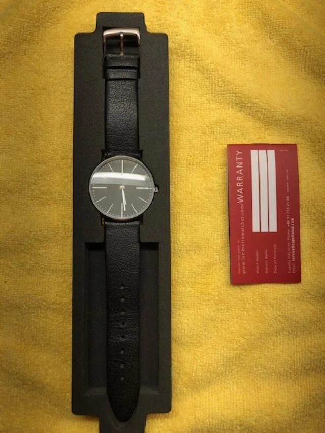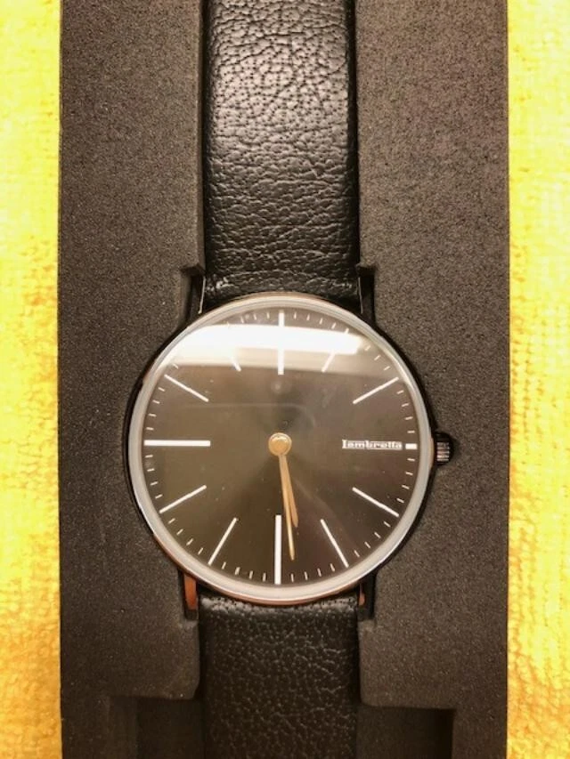 LAMBRETTA MEN'S WATCH Cesare 42mm  Black Silver Slim Leather Strap